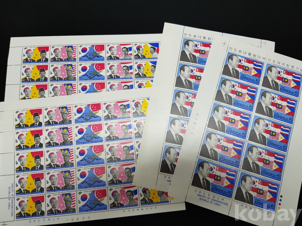 - 미사용 1981년 전두환 대통령 아세안 5개국 방문 기념 전지 2종 4매 모음