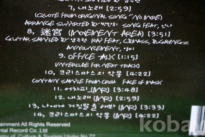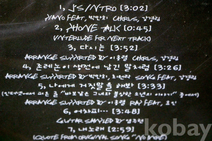 수록 곡 목은 사진을 참조하시기 바랍니다