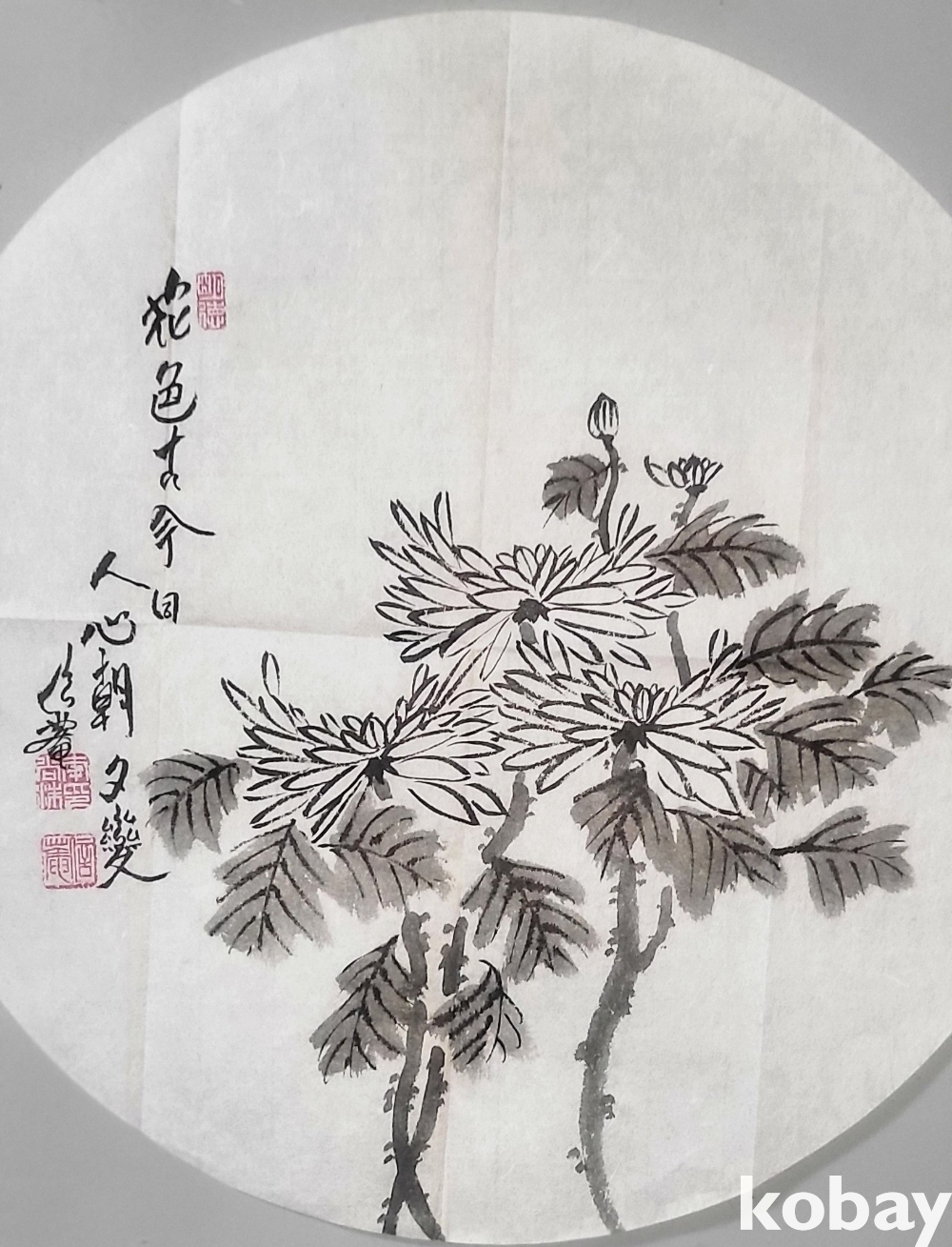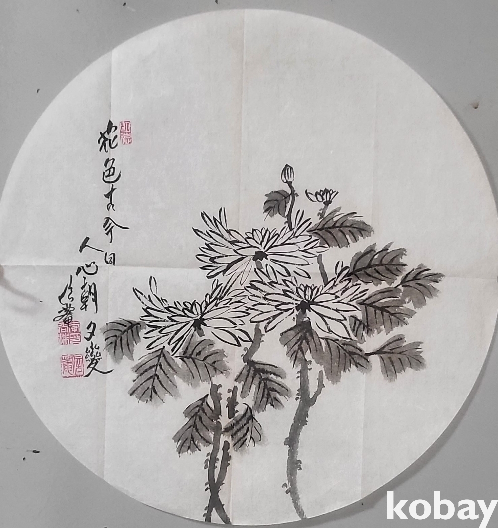 국전28회 특선작가 이상수 作 종이에 수묵화(水墨花) 국화 (菊) 그림입니다,