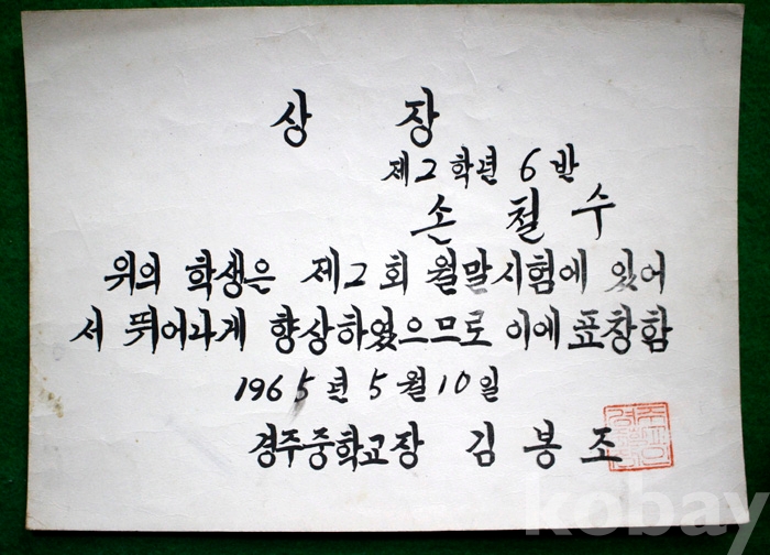 (졸업장 및 상장) 1965년 경주중학교의 상장