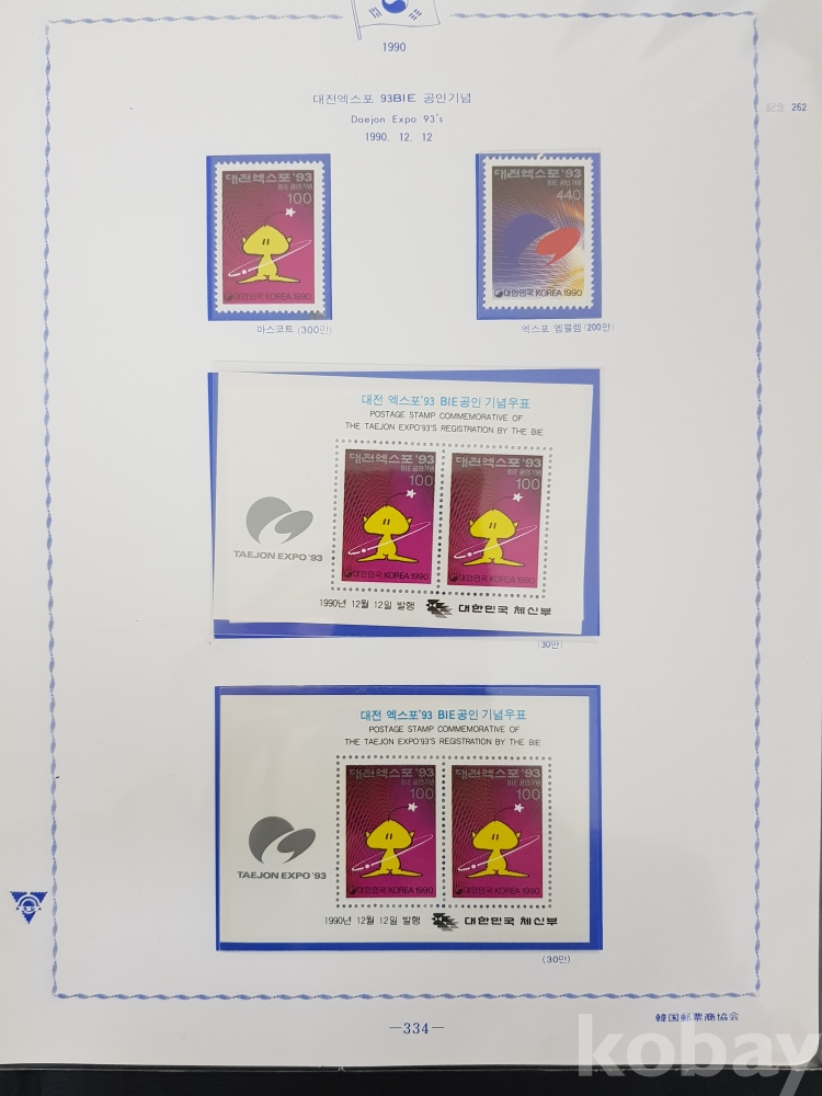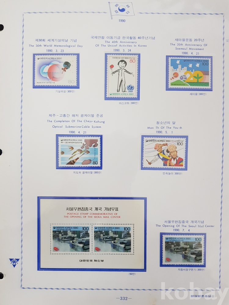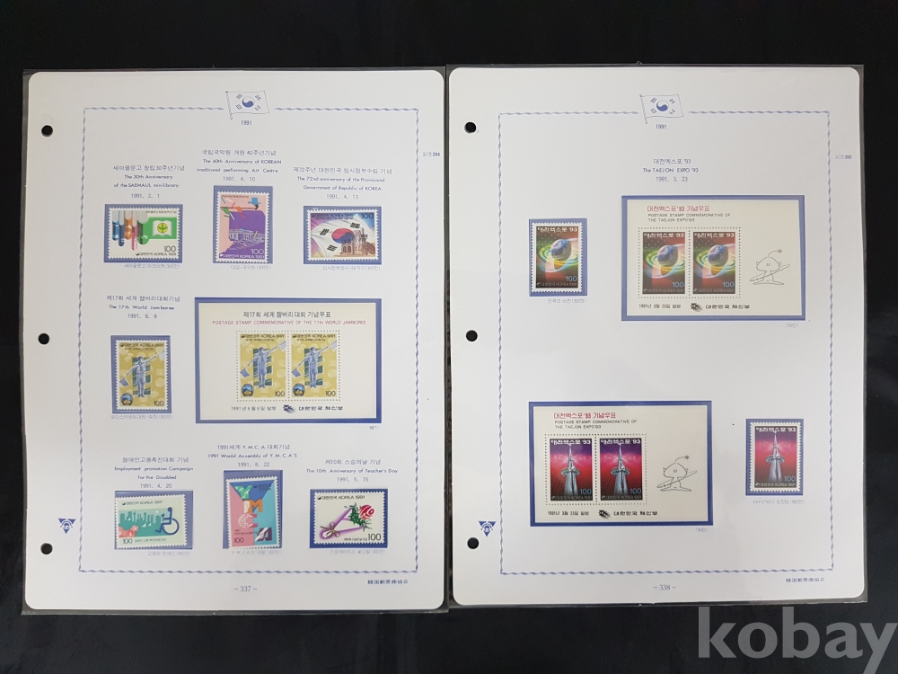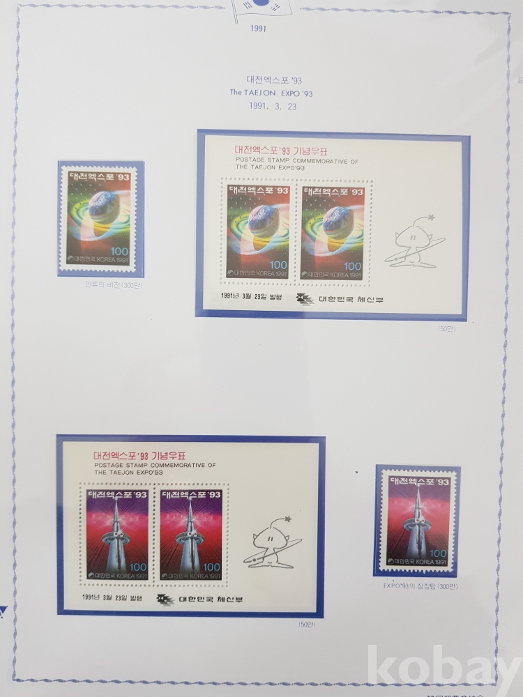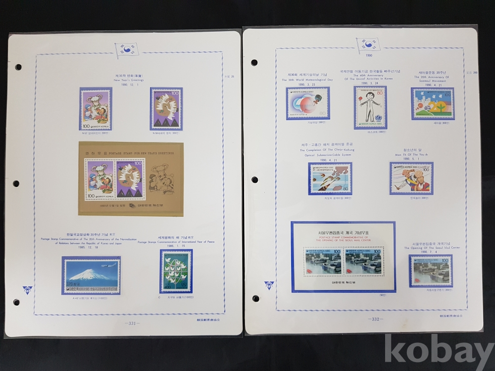 - 1990년~1995년 한국우표앨범 8번 우표책 10판 / 한국우표문화협회 앨범해체분