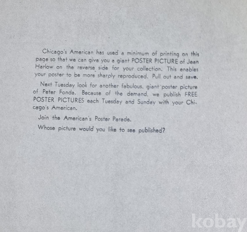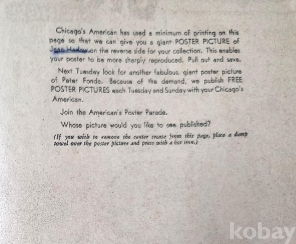 당시 신문에 삽입된 대형 포스터(Giant Poster Picture)로, 신문 용지 특유의 빈티지한 질감이 살아있습니다.