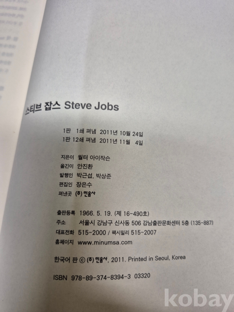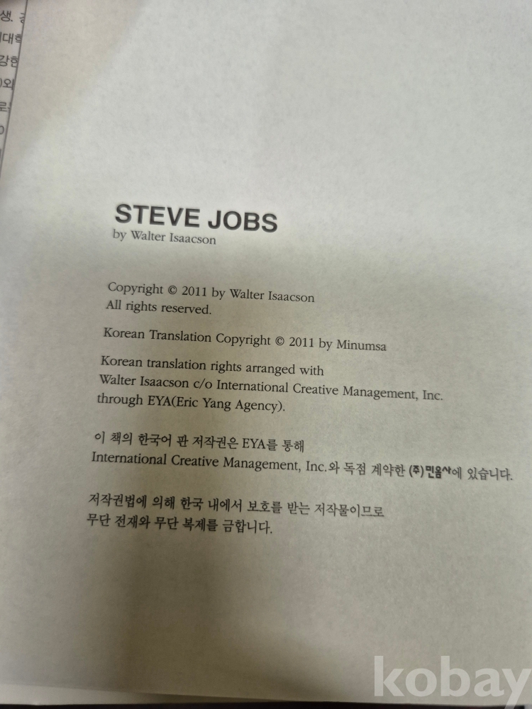 2011년 스티브 잡스 서적 자서전 책자 16.5*23*6