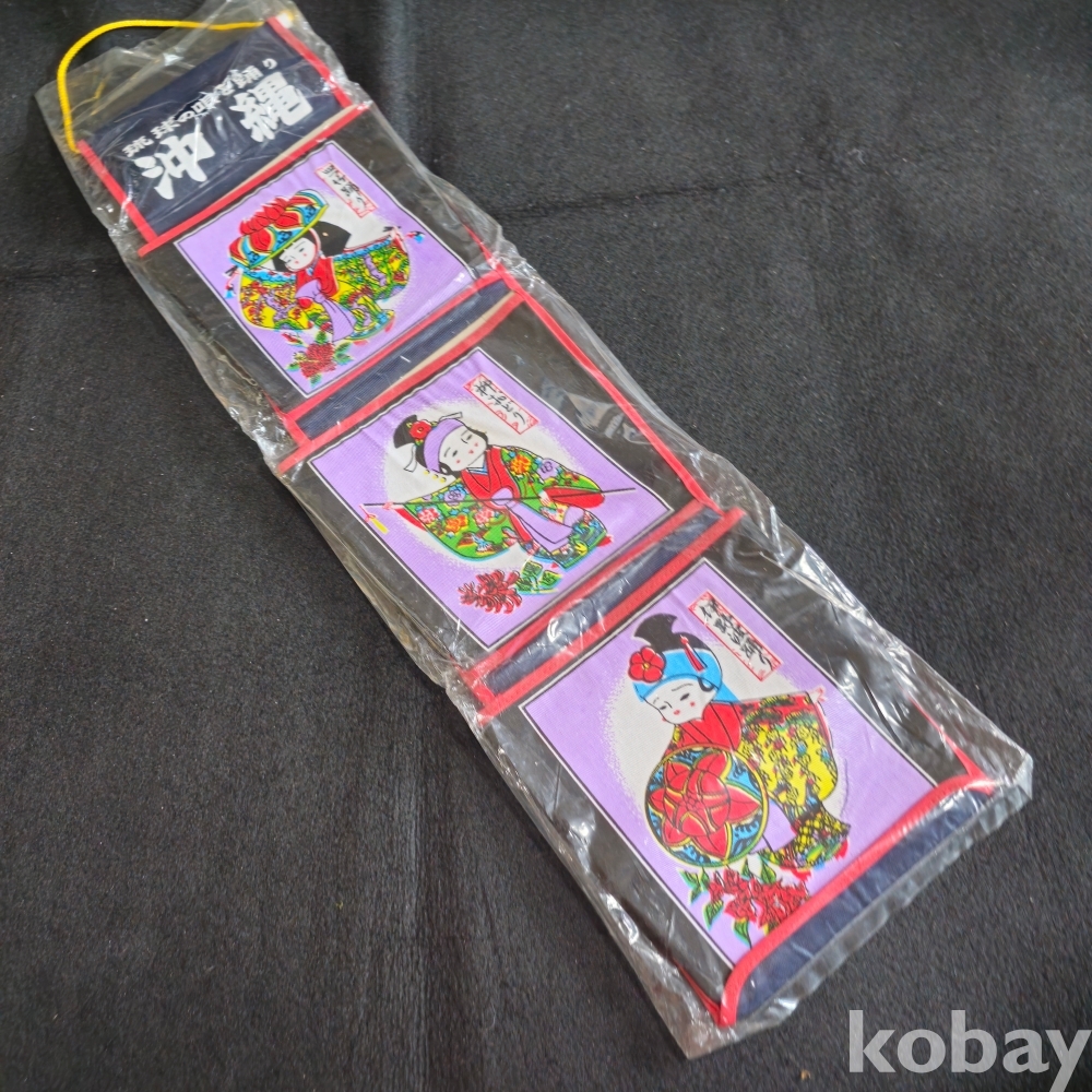(((관광기념품))) 오래전 일본 오키나와 (沖縄) 관광기념 헝겊 3단벽걸이 편지/메모지함