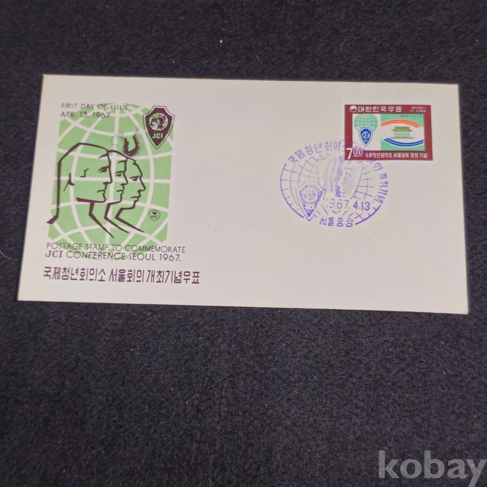 (천원경매) (((우취자료/초일봉피)) 1967년 국제청년회의소 서울회의 개최기념 초일 봉피