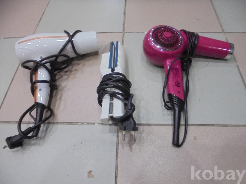 깨끗한 영어마크들어간 작동잘되는 머리말리는 전기드라이기 2점과 전기고데기 1점 고데기 가로세로높이 25 x 6 x 5 cm 외사진참조