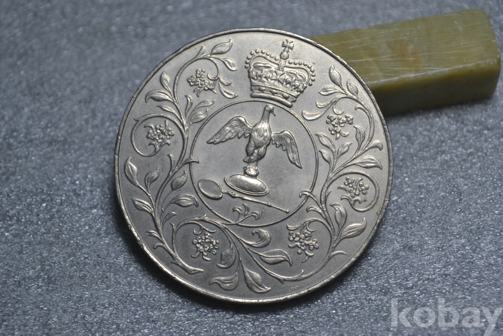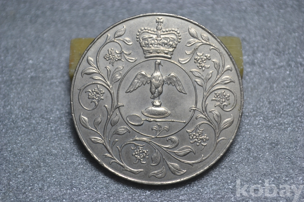 " 귀한종류 (38.5 mm 대형 크라운 사이즈)(극미품 이상~) " ~ 영국 엘리자베스 2세 즉위 25주년 기념주화 25뉴펜스 / 1977년도 제작발행주화" 영국 엘리자베스2세 즉위25주년 기념주화 / 대형 크라운 주화 " / 깨끗하고 좋은 보존상태~