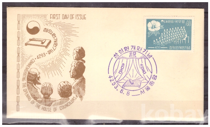 (초일봉피) 1960.8.8 참의원 개원 기념 FDC (서울중앙 4293.8.8)