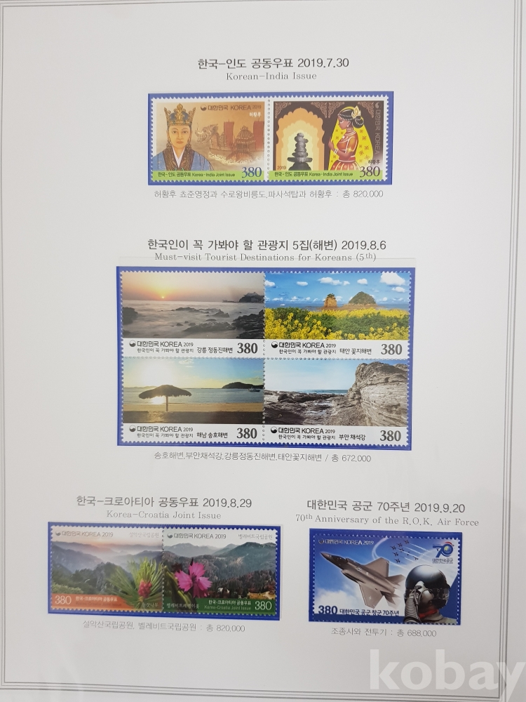 - 일부 미부착된 부분이 있을 수 있습니다. 이 경우 보유하고 계신 우표를 채워 넣어 수집하시면 더욱 완성도 있는 컬렉션을 만드실 수 있습니다.