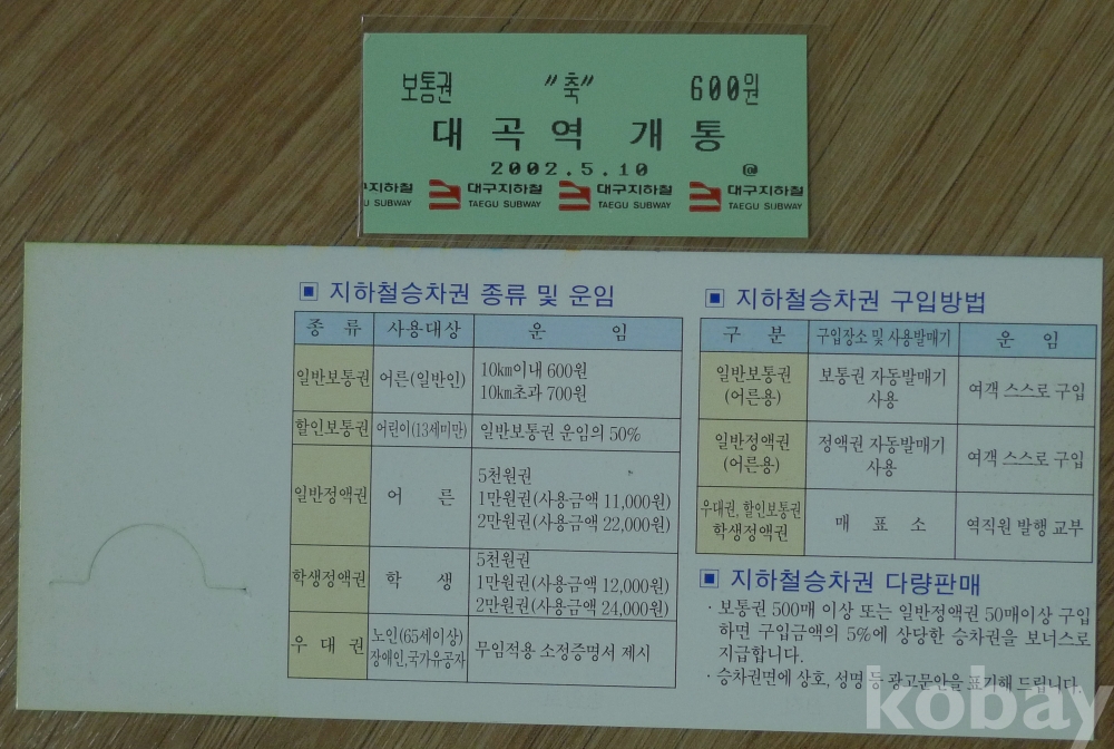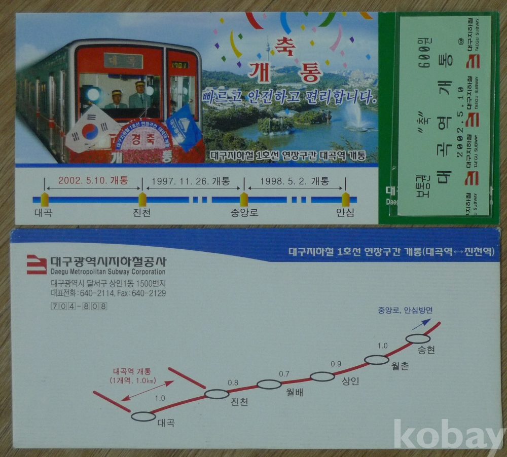 1997년 대구지하철 1호선 1단계 진천 - 중앙로 개통 기념 승차권