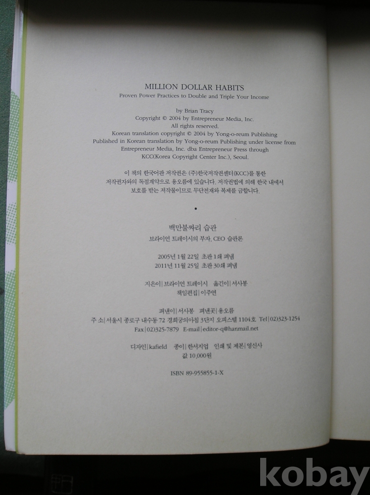F-39, 책, 백만불짜리 습관, 브라이언 트레이시 저, 2011, 288 쪽.