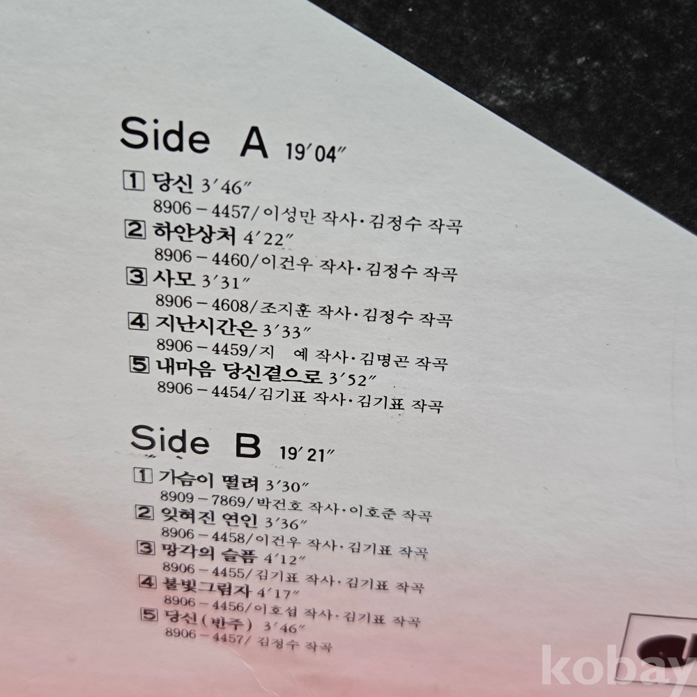 | 자켓상태 | EX : 약간의 마모, 모서리 찢김 존재 | 음반상태 | NM : 개봉했으나 미사용급, 스크래치 없음 | 발매정보 | 초반 | 가사지여부 | 유 |