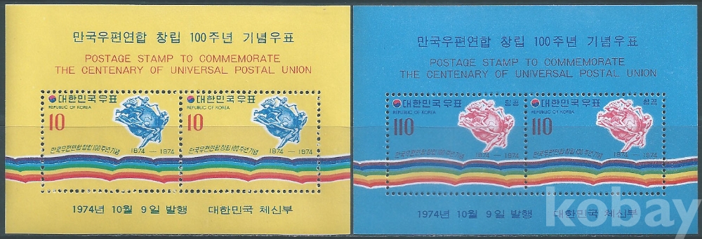 (한국시트-651)1974년만국우편연합100년시트2종(미사용제)-MNH, VF