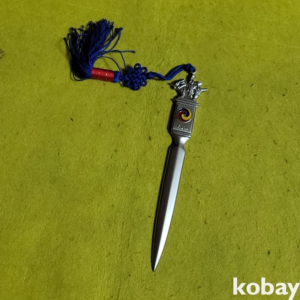 (((편지칼))) 오래전 매듭달린 우리고유의 신라 토기상모습 금속 편지칼 (KT)(은색)