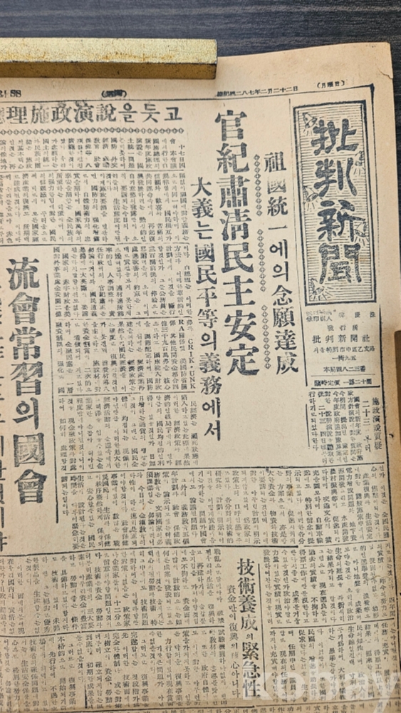 비판신문1954년 2월22일 월요일 신문