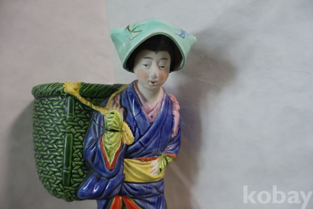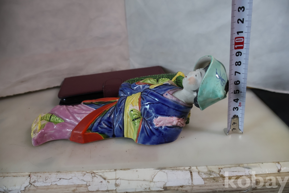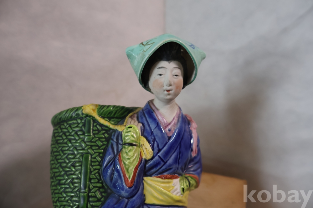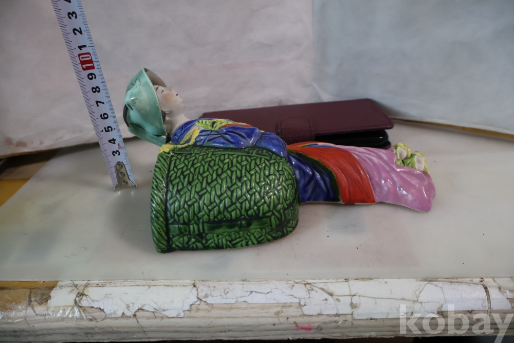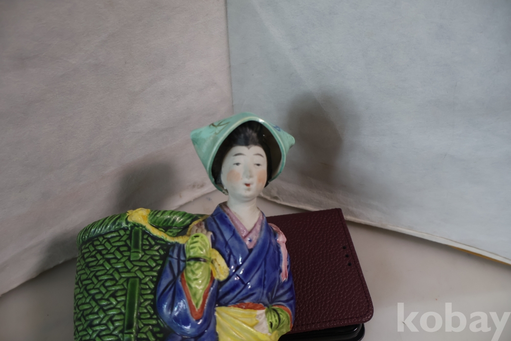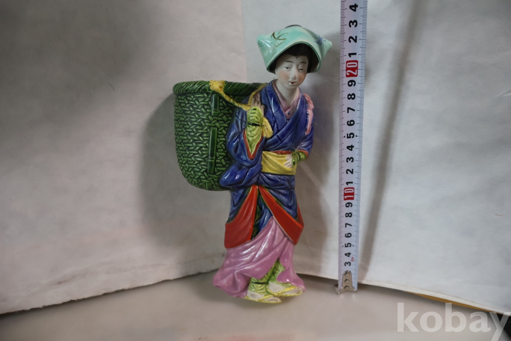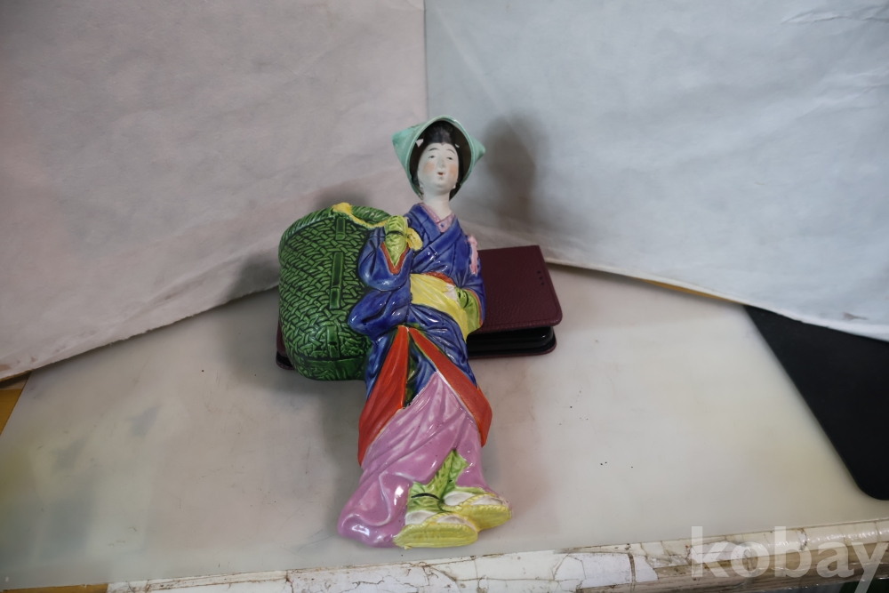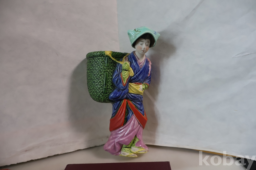 밝은 색감 3 디 의 효과를 보여 주는 귀한 명품 임니다 뒤에는 걸어두는 구멍을 가진 명물 임니다 극히 귀한 명품 도자기 일본 여인 임니다