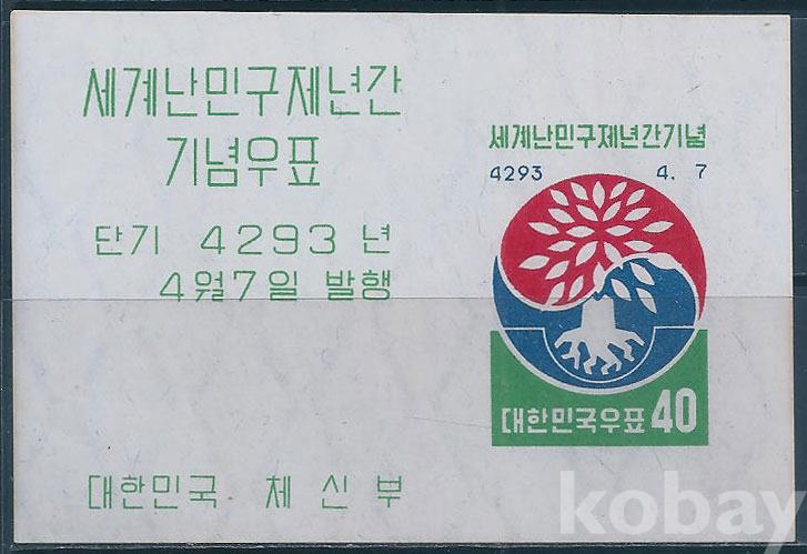 (한국시트-899)1960년세계난민구제시트(미사용제)-MNH, VF