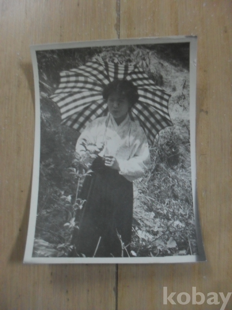 1300h)작은사진-50년대 야외에서 양산 쓴 여성 사진.