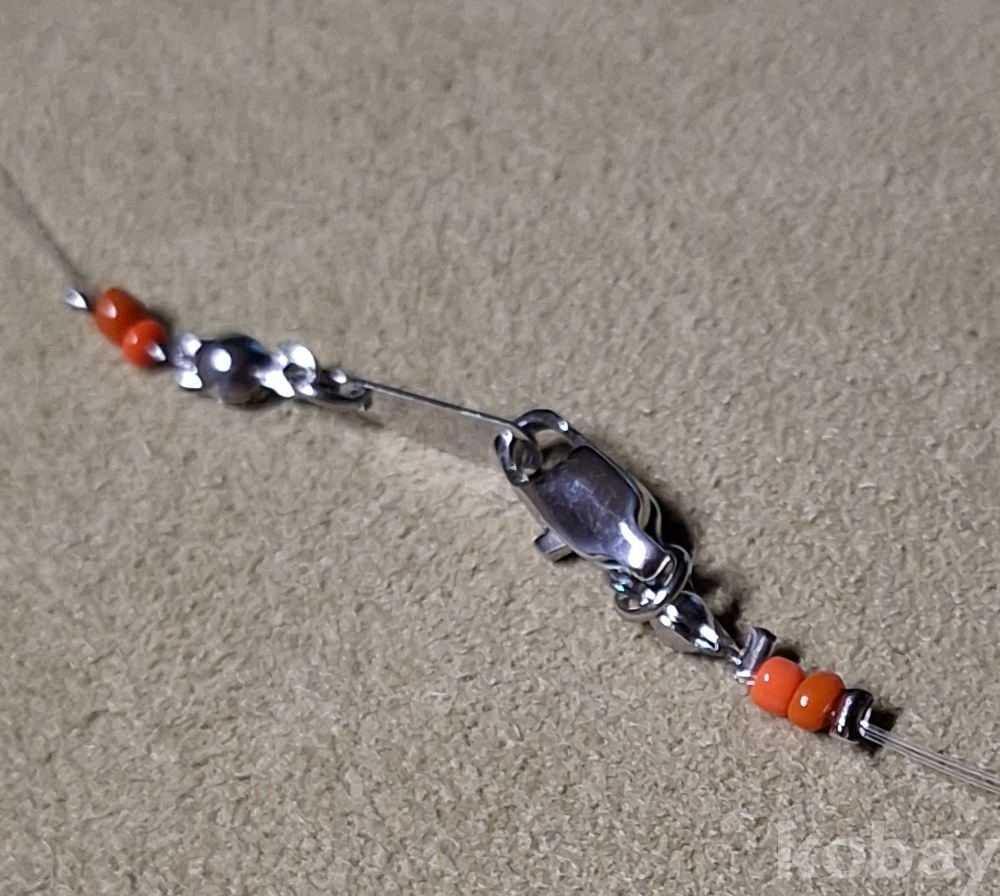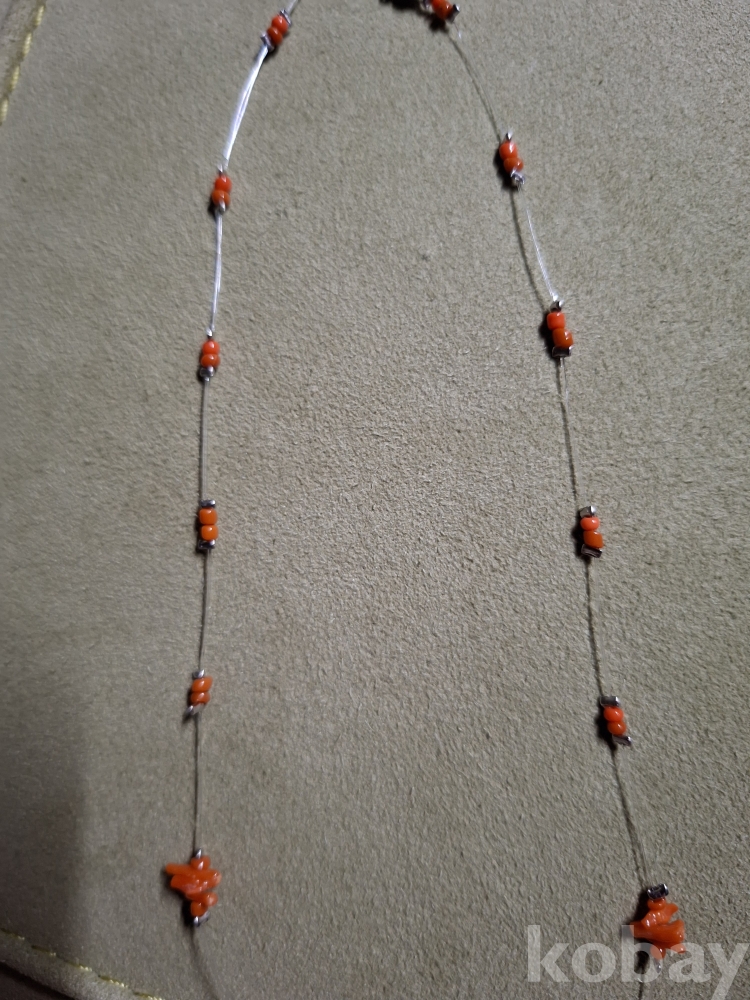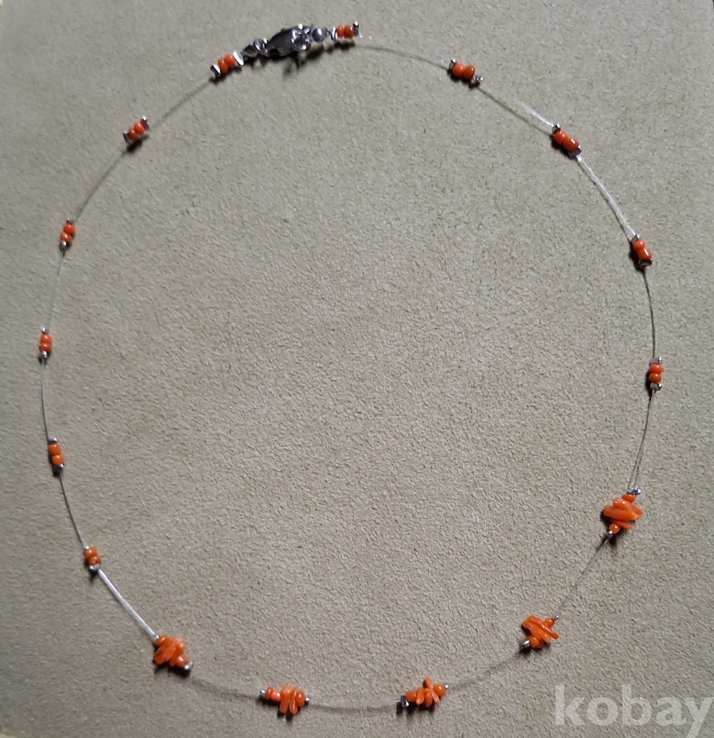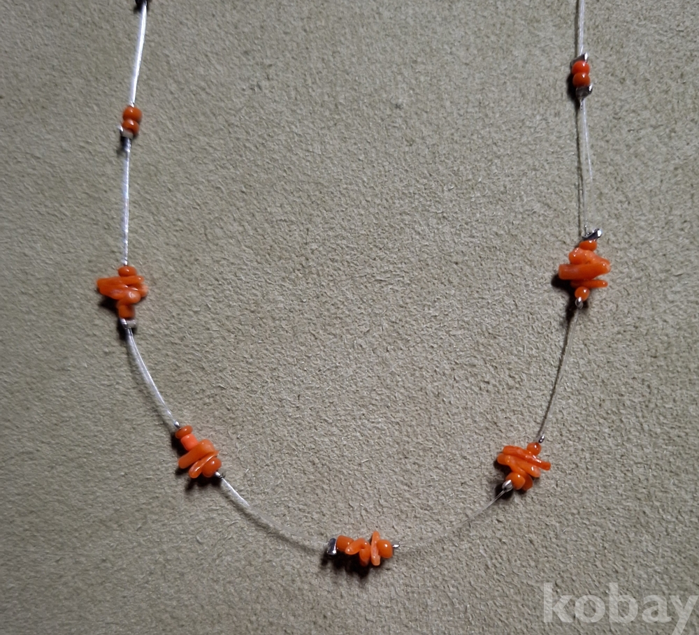 작은 산호를 낚시줄로 엮은 목걸이입니다. 줄이 투명해서 더 산뜻합니다.