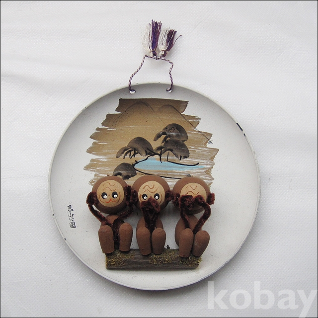 세 마리 원숭이가 각각 눈, 귀, 입을 가리고 있는 모양을 하고 있다.