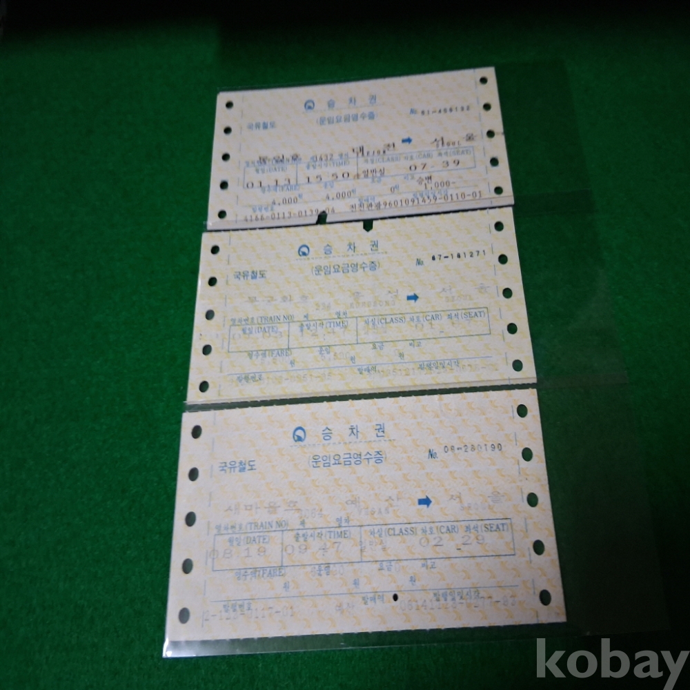 한국철도 새마을,무궁화,통일호 3매 사용제