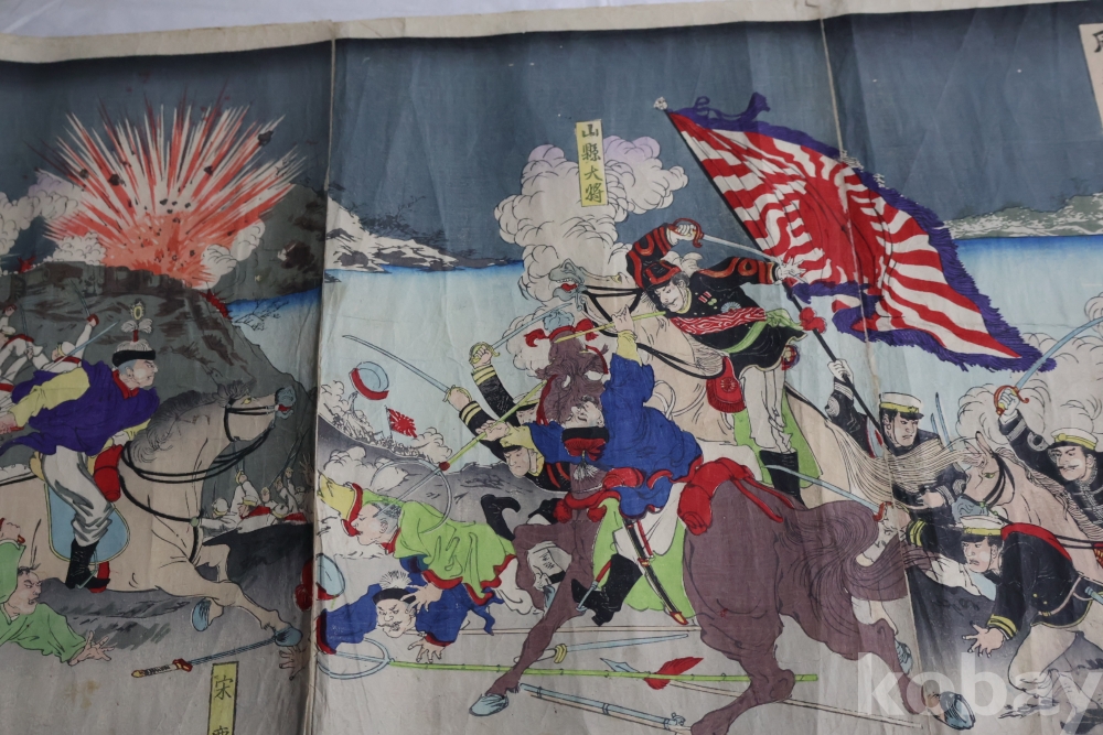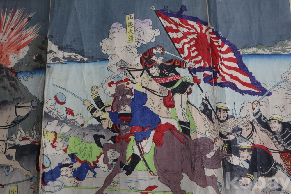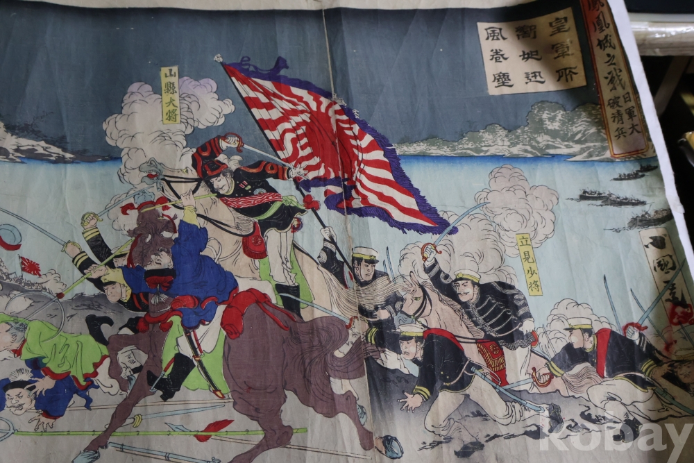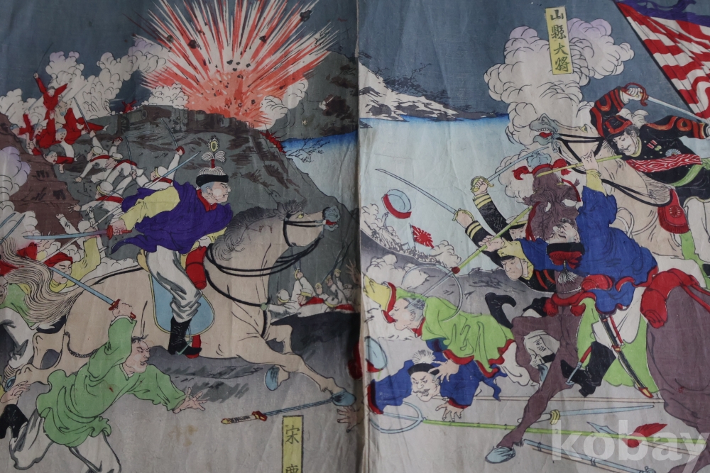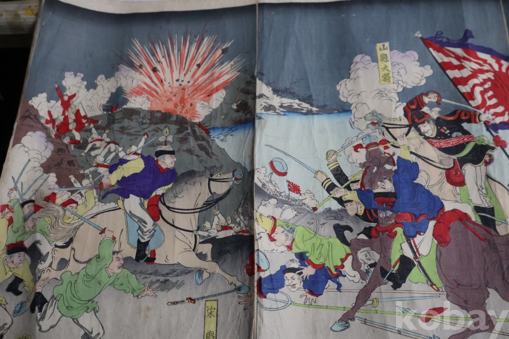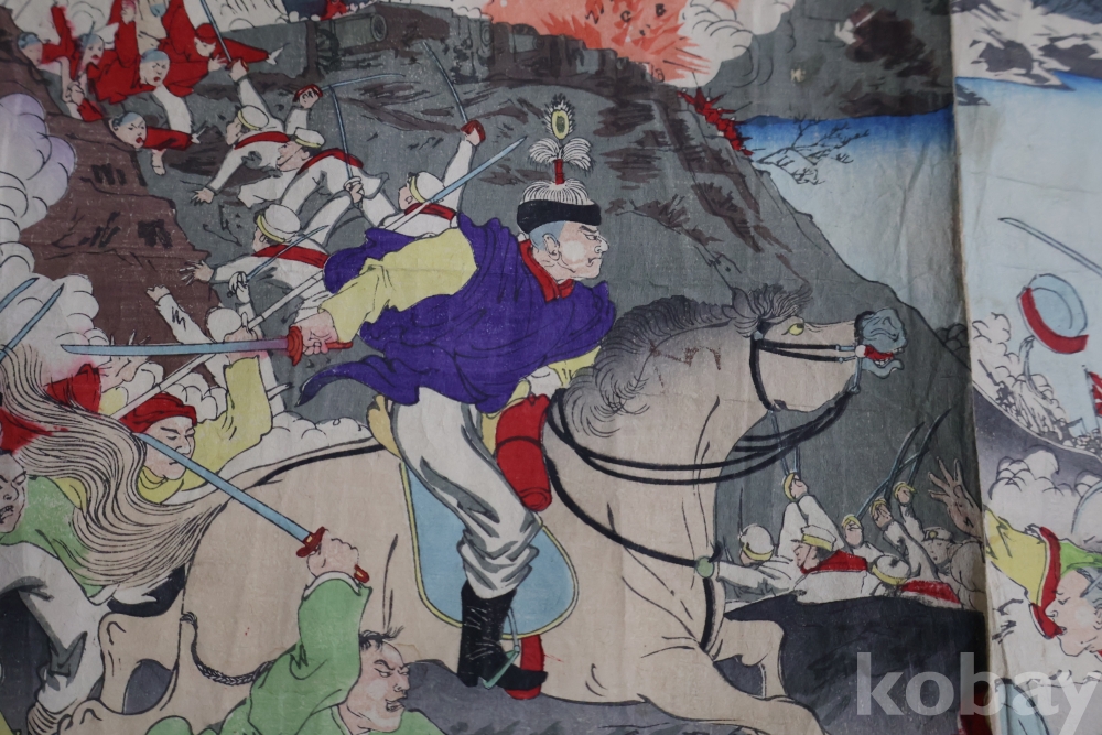 청일 전쟁 3 매 연속 목판화 임니다 당시의 전쟁을 알린 명물 임니다 세월의 흔적을 가진 명화 종군화가 고구니마사 임니다