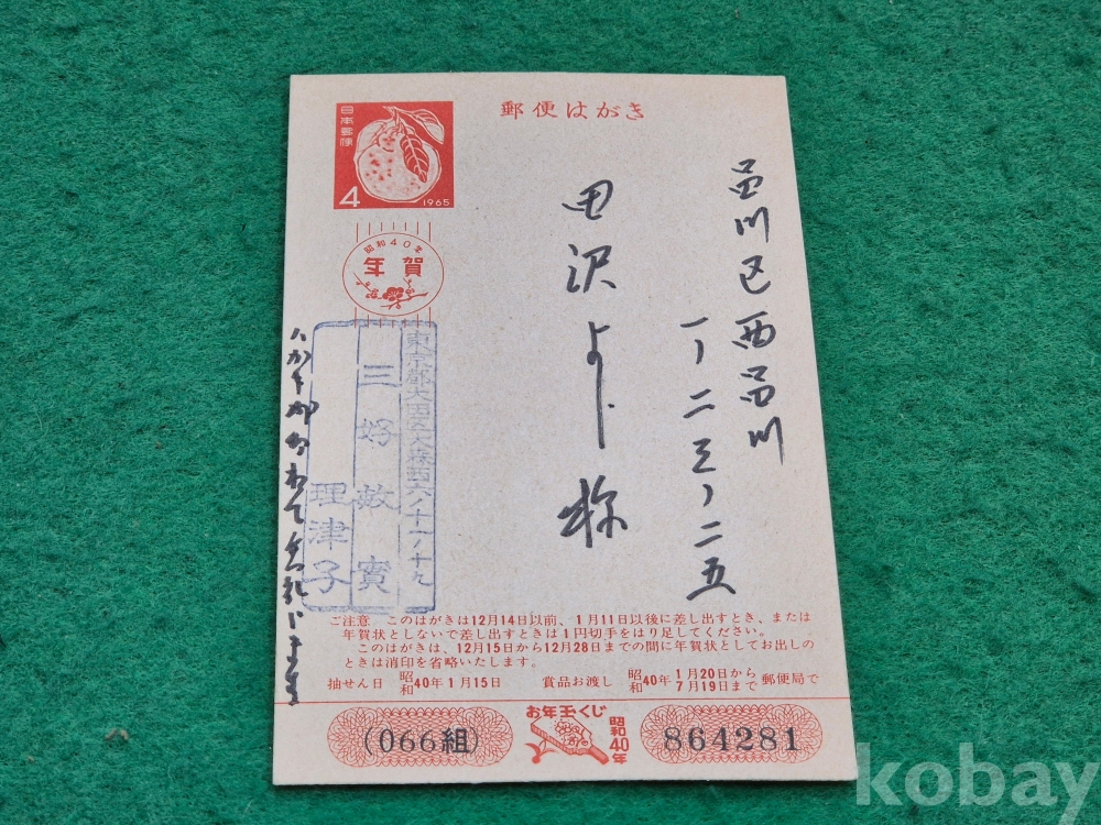 1]. 품명 : 1965년 (소화 40년) 일본 발행 연하 엽서