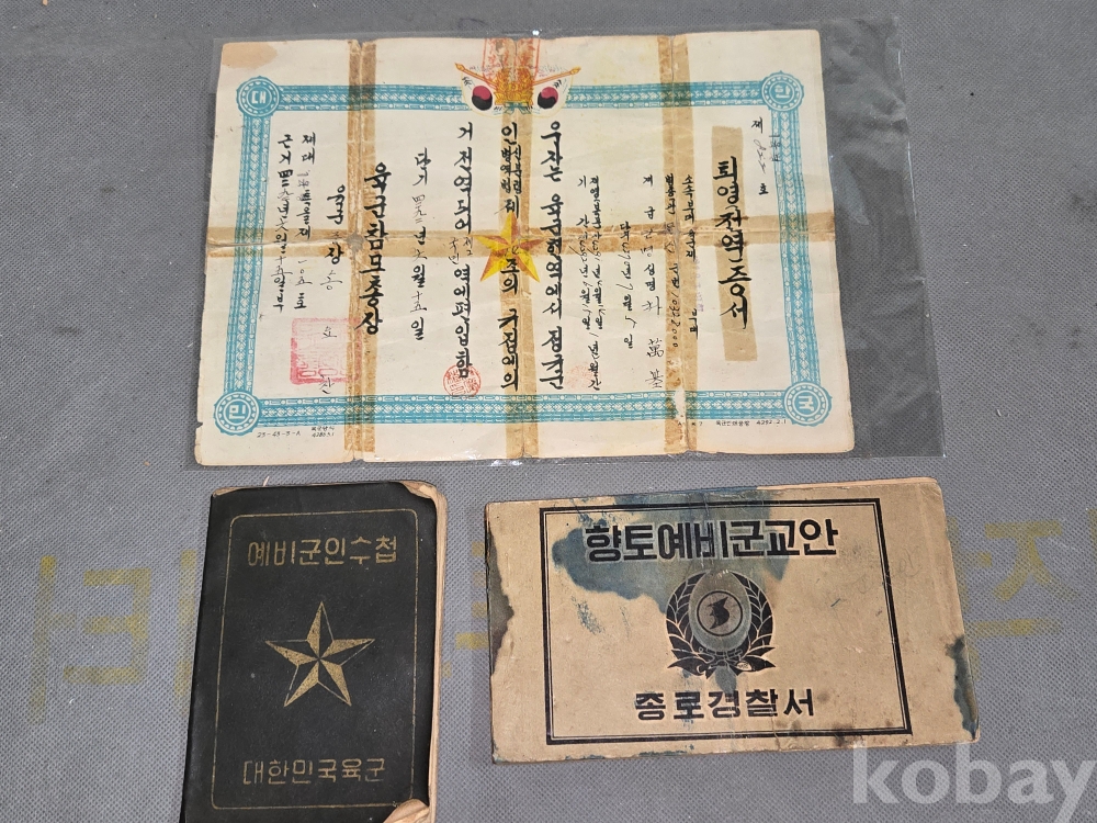 1960년대 전역증서 / 종로경찰서 . 향토예비군교안.예비군인수첩 등 == 3점 일괄