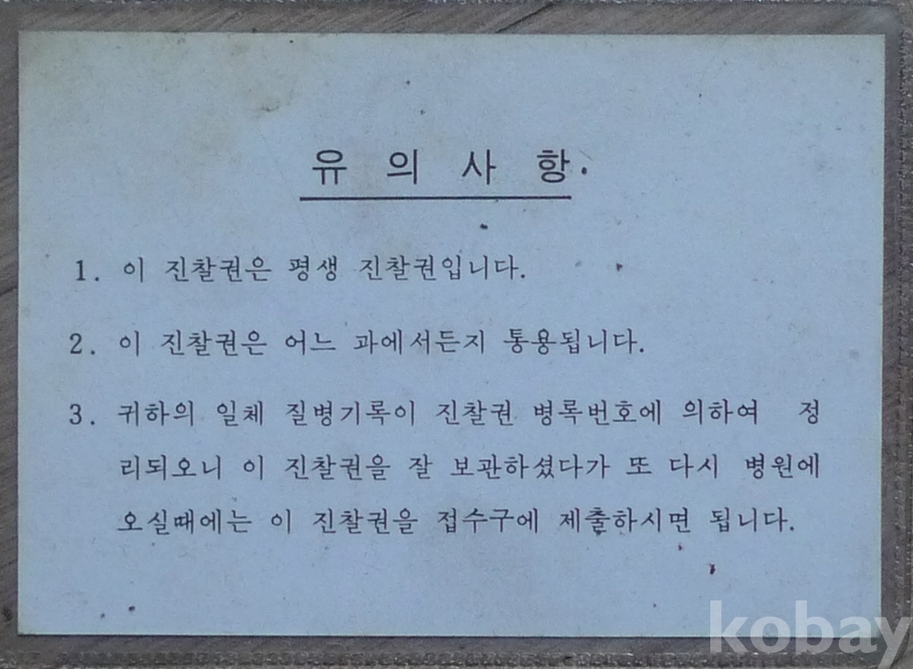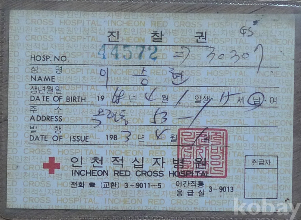 1983년 인천 적십자 병원 진찰권
