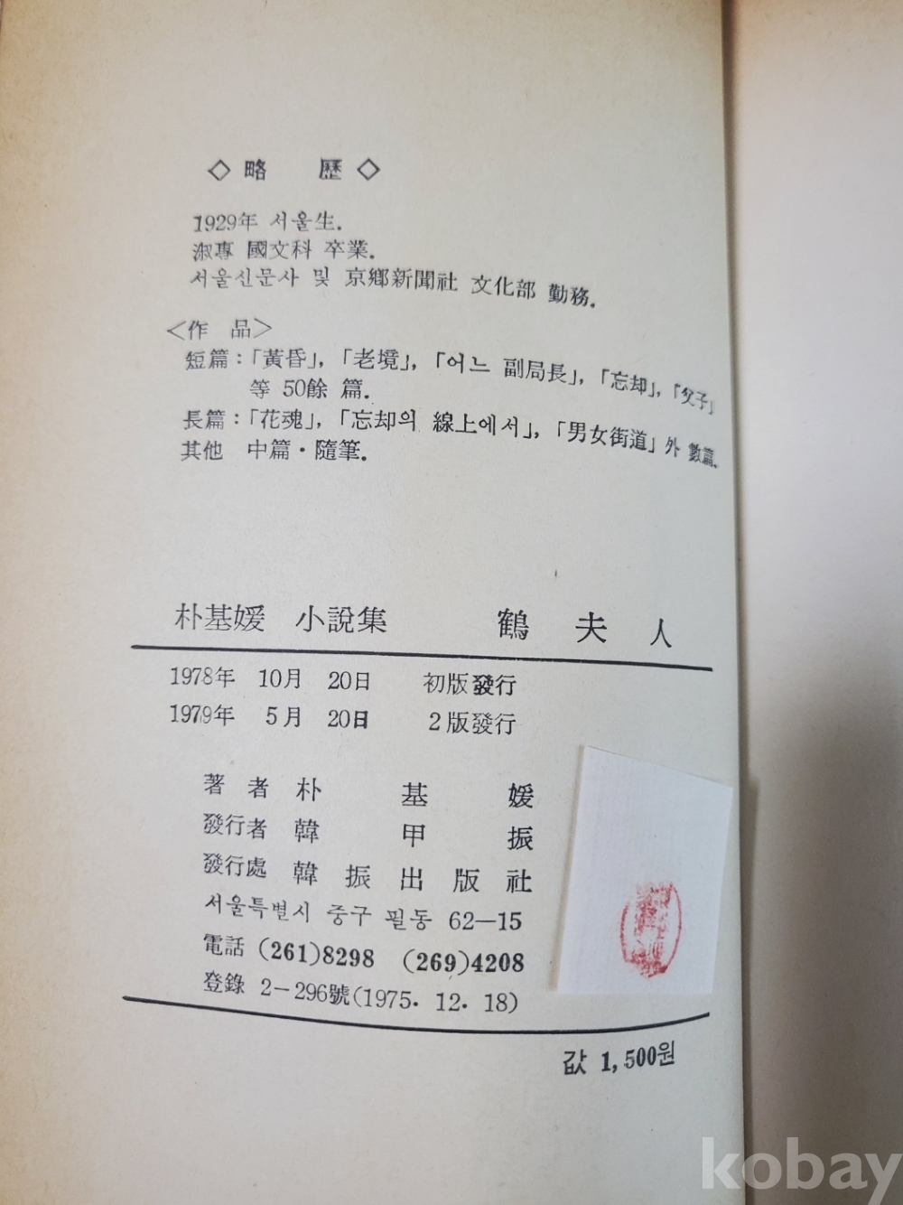 1. 학부인, 박기원, 한진출판사, 1979년, 317쪽, 상태 상, 사진 참조