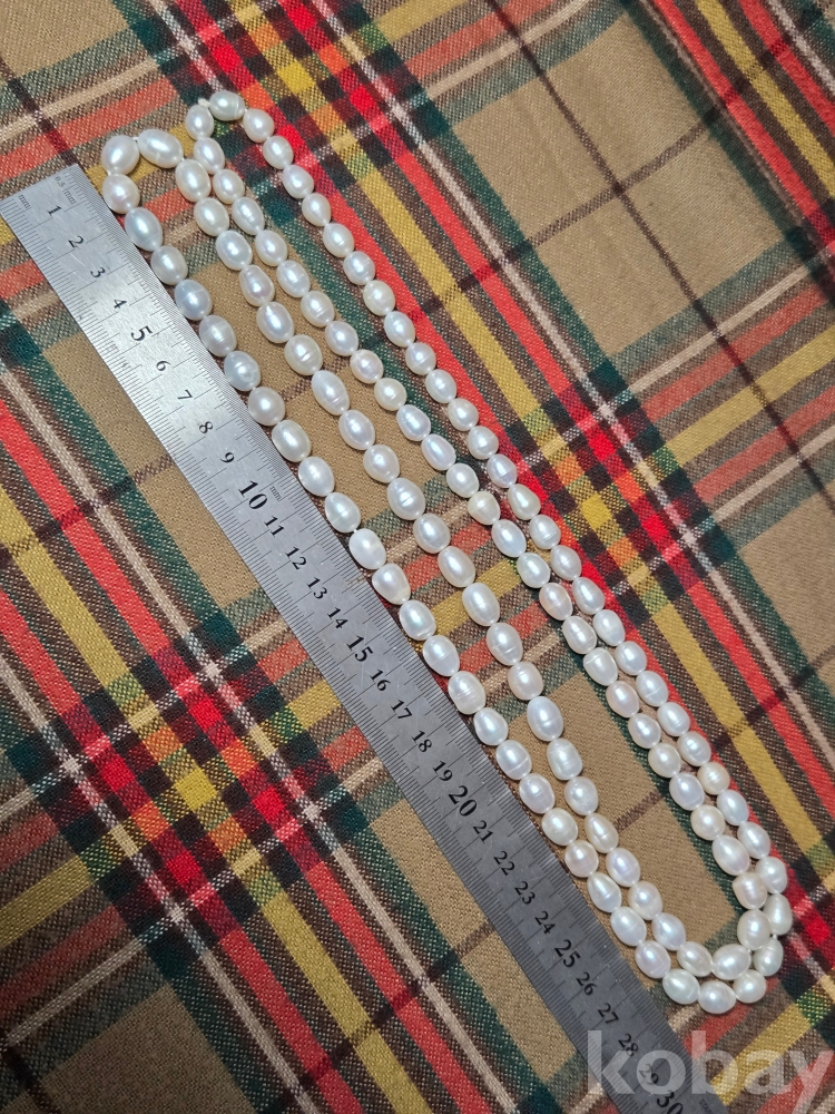 미사용상태로 보관된 진주알, 비드체인으로. 고리장식없이 줄에 꿰어놓은상태지만 현재상태로 레이어드 목걸이 팔찌등으로 연출가능합니다.