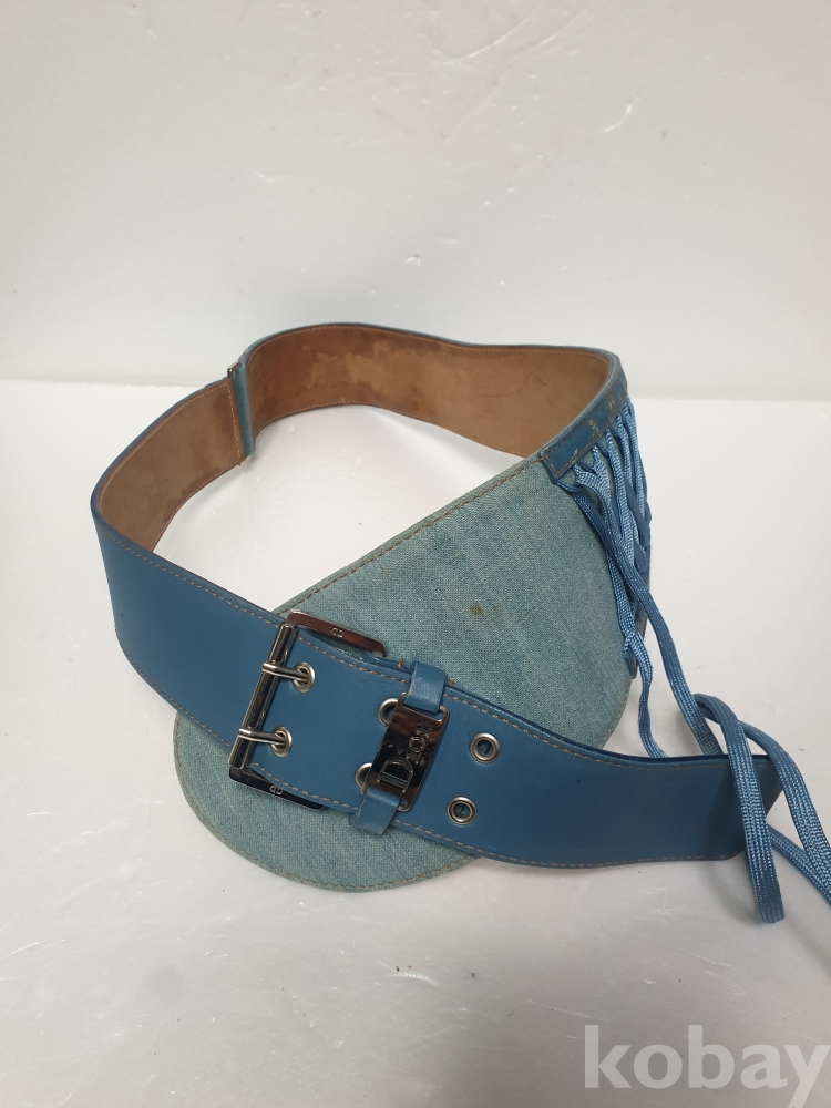 [천원경매] 3-330 디올 블루 컬러 데님및 가죽소재의 여성용 벨트(사용감있음, 폭 5cm, 길이 104cm, 정품확인불가)
