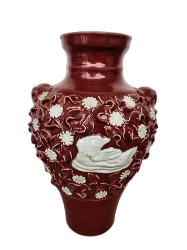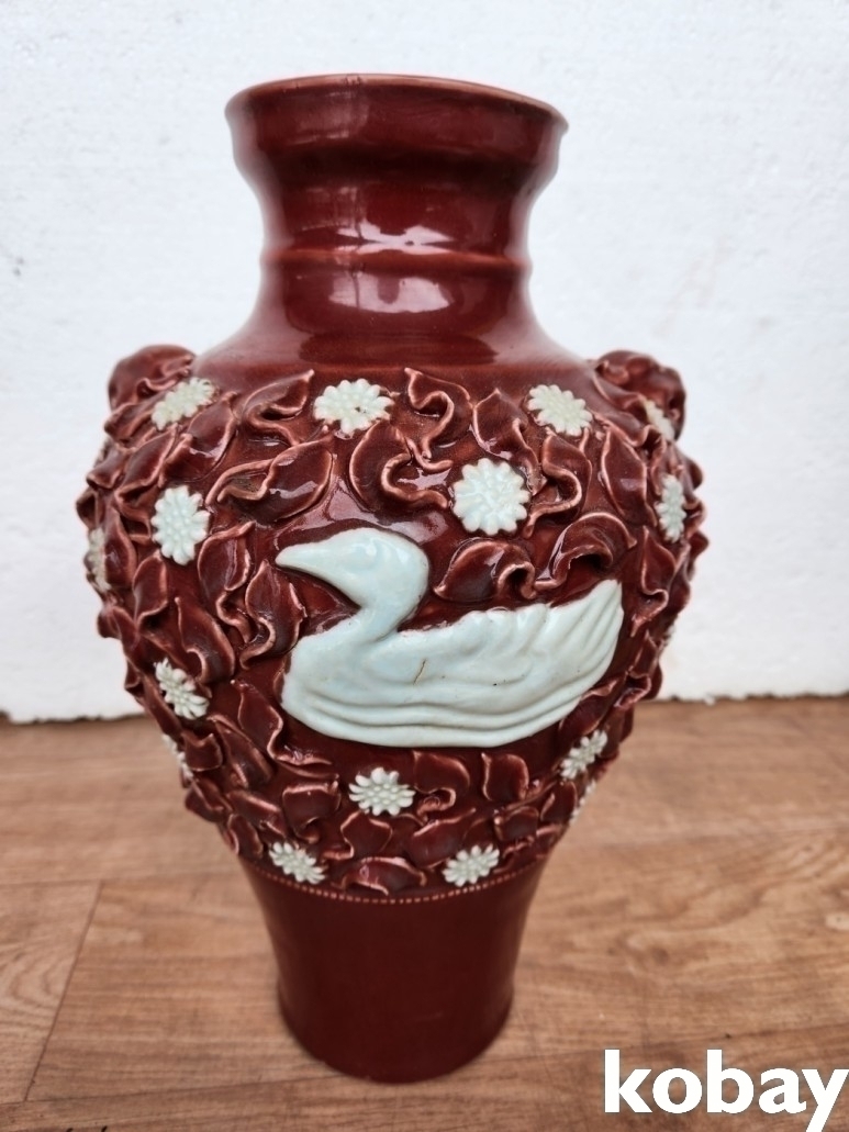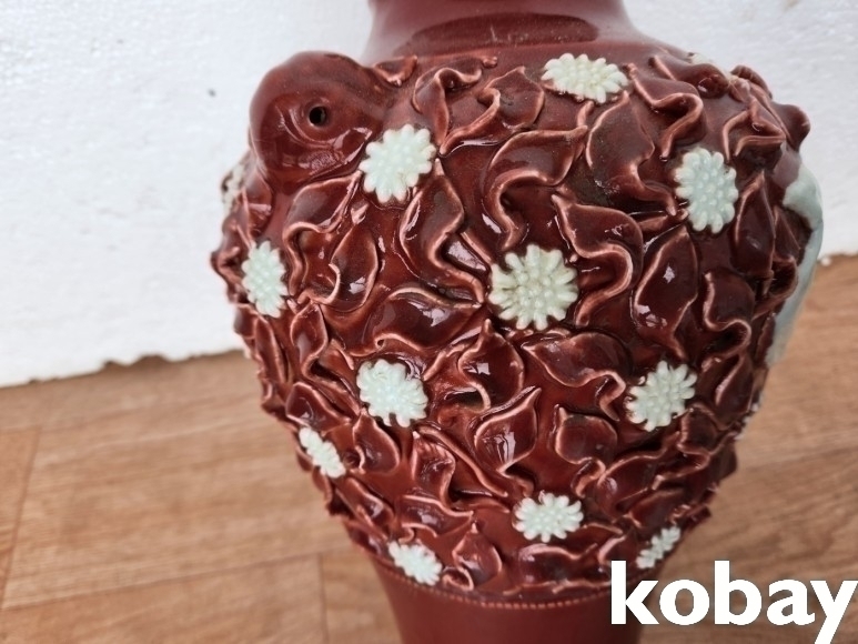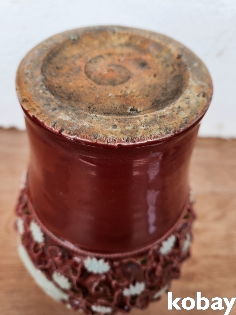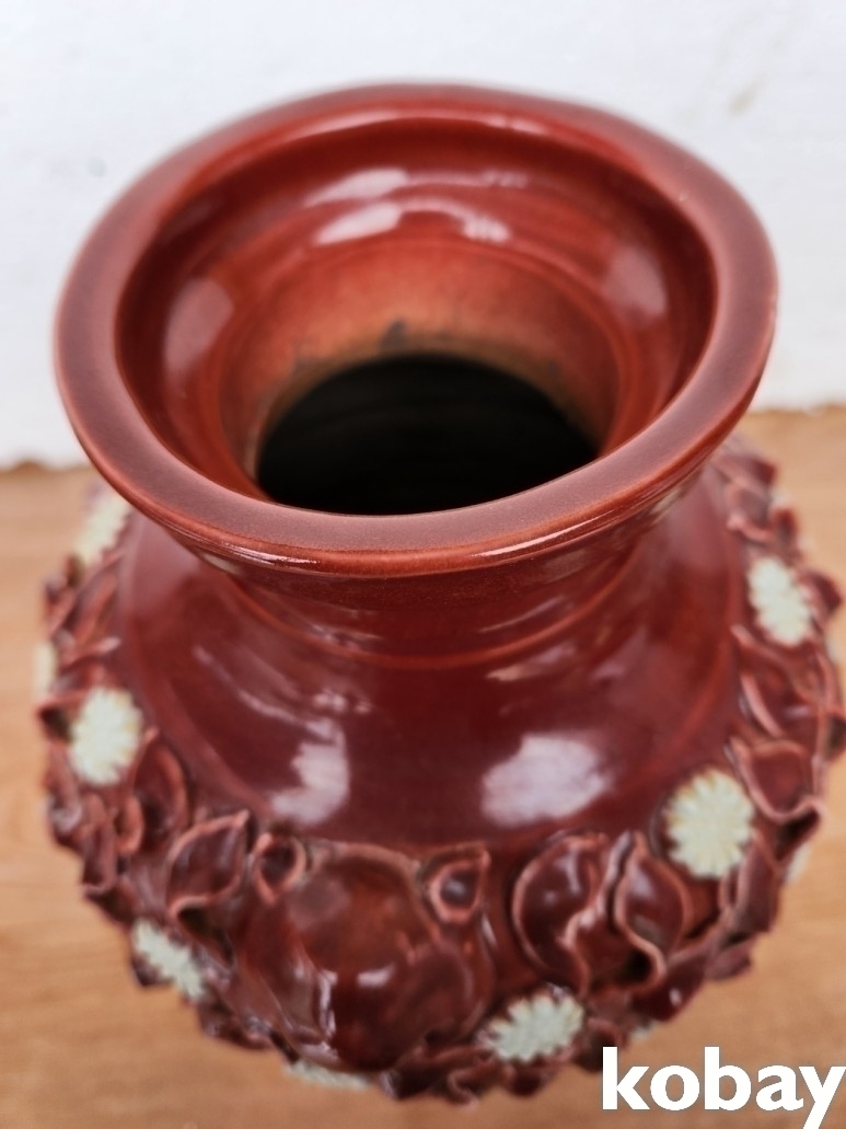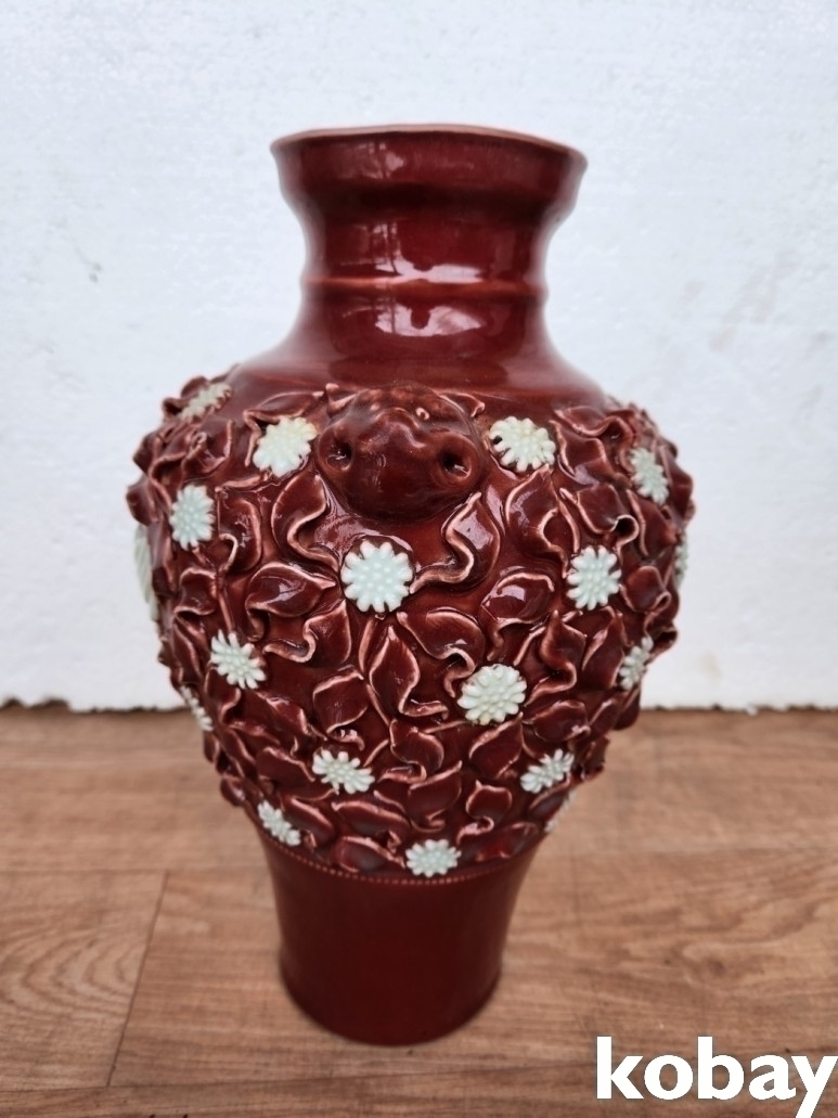 꽃 문양일 돌출로 있는 도자기 입니다.