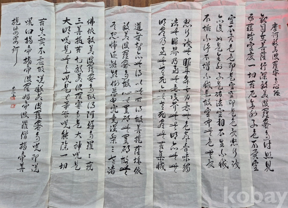 작품성 좋은 6폭 반야심경 서예 병풍'이오니 작품 이미지상 수결 및 낙관'등 두루 잘 참조하시고