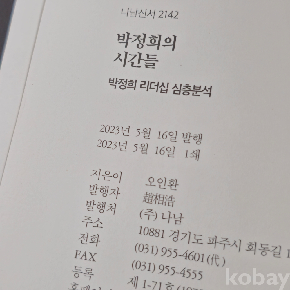 (((대통령자료))) 박정희의 시간들 (박정희 리더십 심층분석) (오인환 지음) (2023년 초판 1쇄)