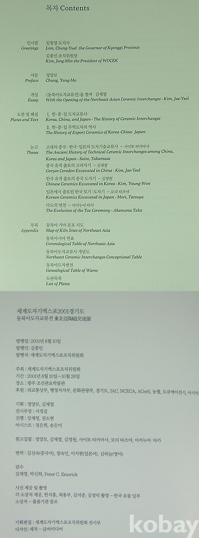 도자교류개념도,동북아도자변천,도판목록등을 실었음.