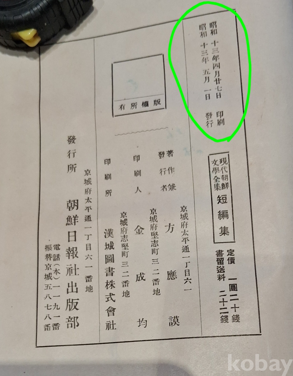 소화 13년 刊