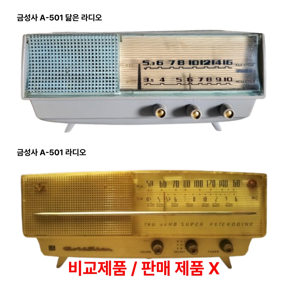 대한민국 최초의 라디오인 1959년 금성사 'A-501'과 쌍둥이처럼 꼭 닮은 외관을 지닌 1950년대 진공관 라디오입니다.