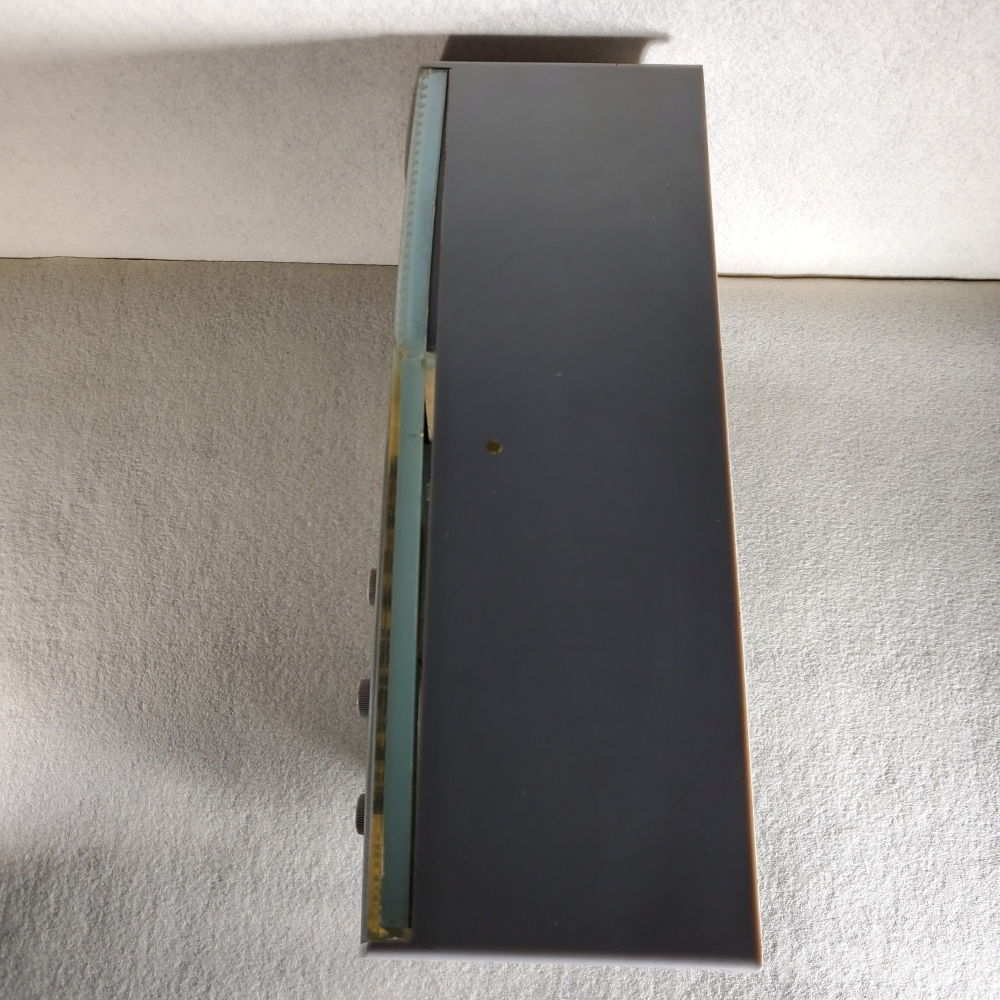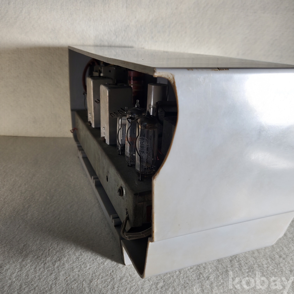 기기 외관 곳곳에 오랜 세월 실사용 및 보관 과정에서 발생한 마찰 흠집과 스크래치, 모서리 부근의 미세한 마모가 뚜렷하게 관찰됩니다. 전면부 주파수 다이얼과 스피커 그릴 주변으로도 세월의 풍파를 견뎌온 묵직한 사용감과 자연스러운 변색이 고스란히 남아있습니다. 눈에 띄는 치명적인 하우징의 큰 깨짐은 보이지 않으나, 내부 진공관과 회로 등 부속품은 연식에 따른 경화와 노후화가 필연적으로 진행되었을 것입니다. 완벽한 실사용을 원하신다면 전문 수리 장인의 전면적인 점검과 오버홀(Overhaul)이 필요할 수 있으며, 현재 상태로는 반세기가 훌쩍 넘는 역사의 훈장을 있는 그대로 품어주실 사료 수집 및 전시용으로 접근해 주시기를 정중히 권해드립니다.
