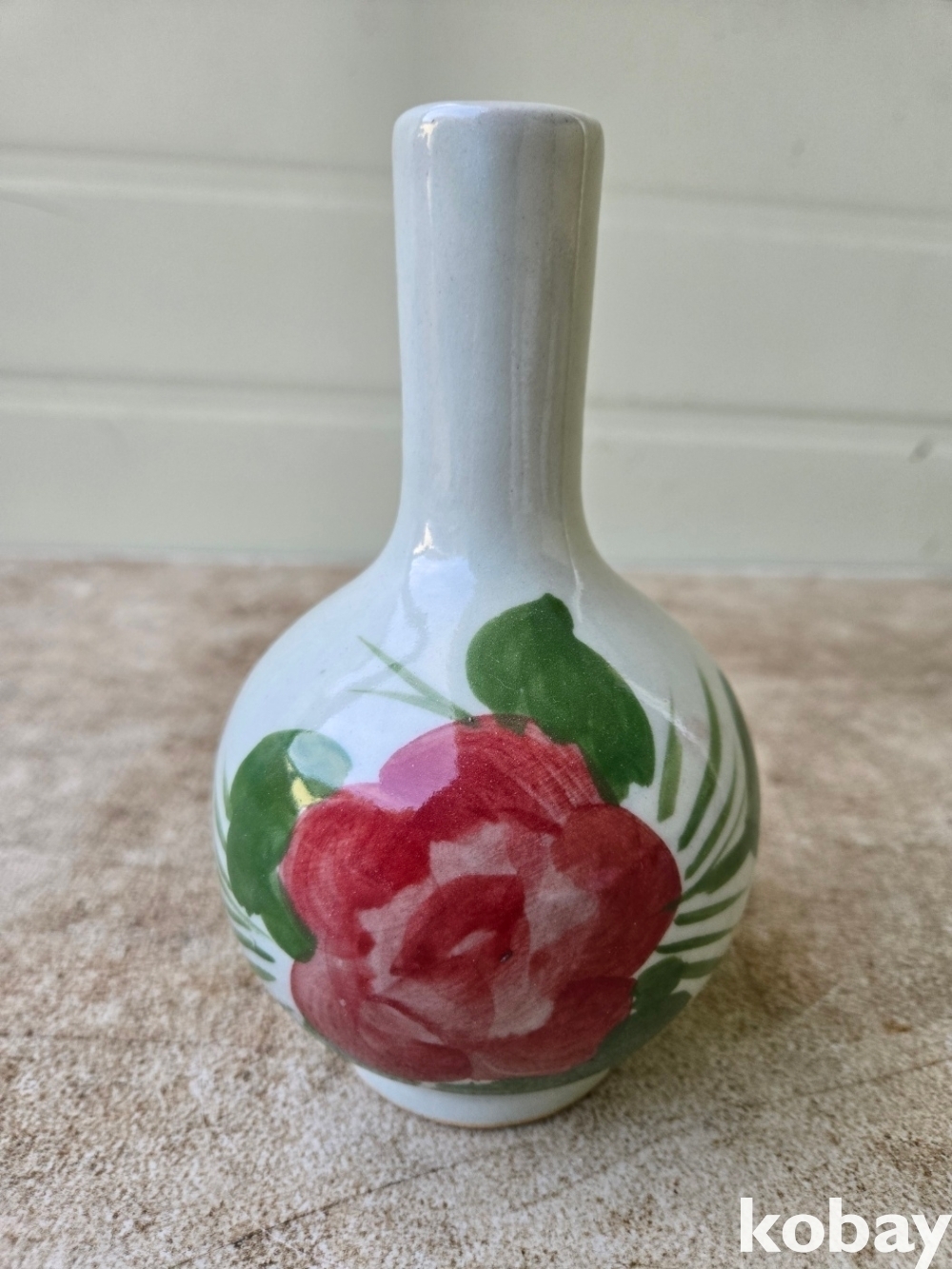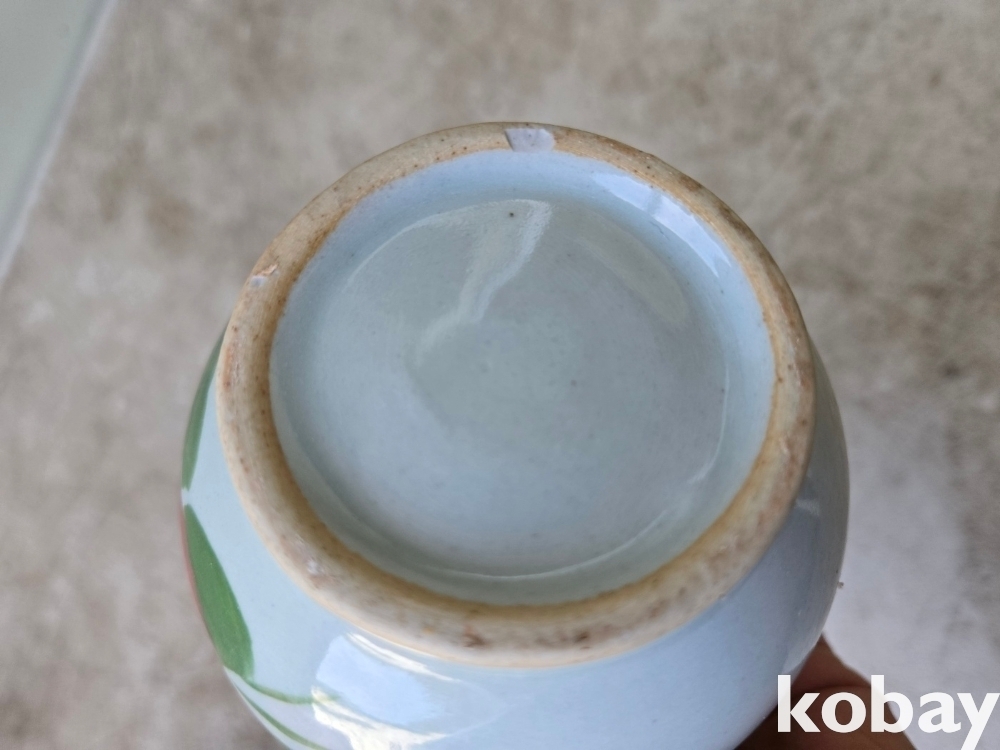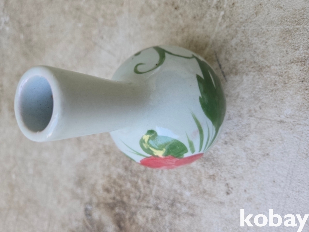 목단 그림이 있는 목긴 도자기 입니다.
