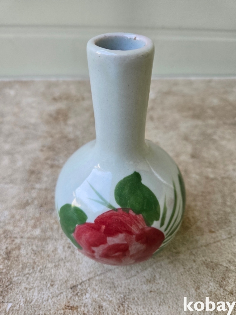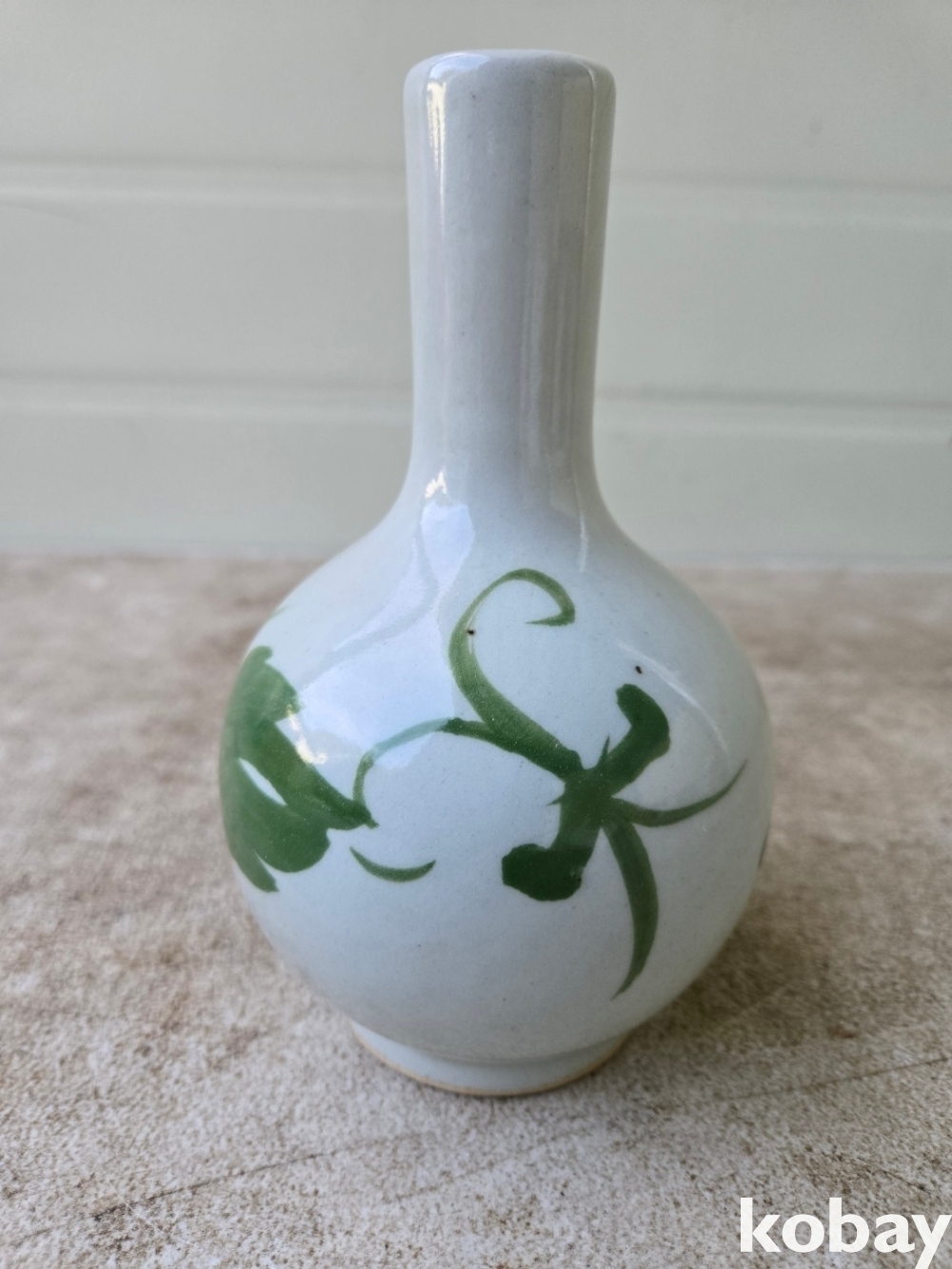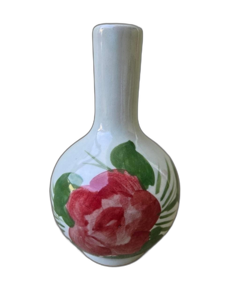 목단 그림이 있는 목긴 도자기 입니다.
