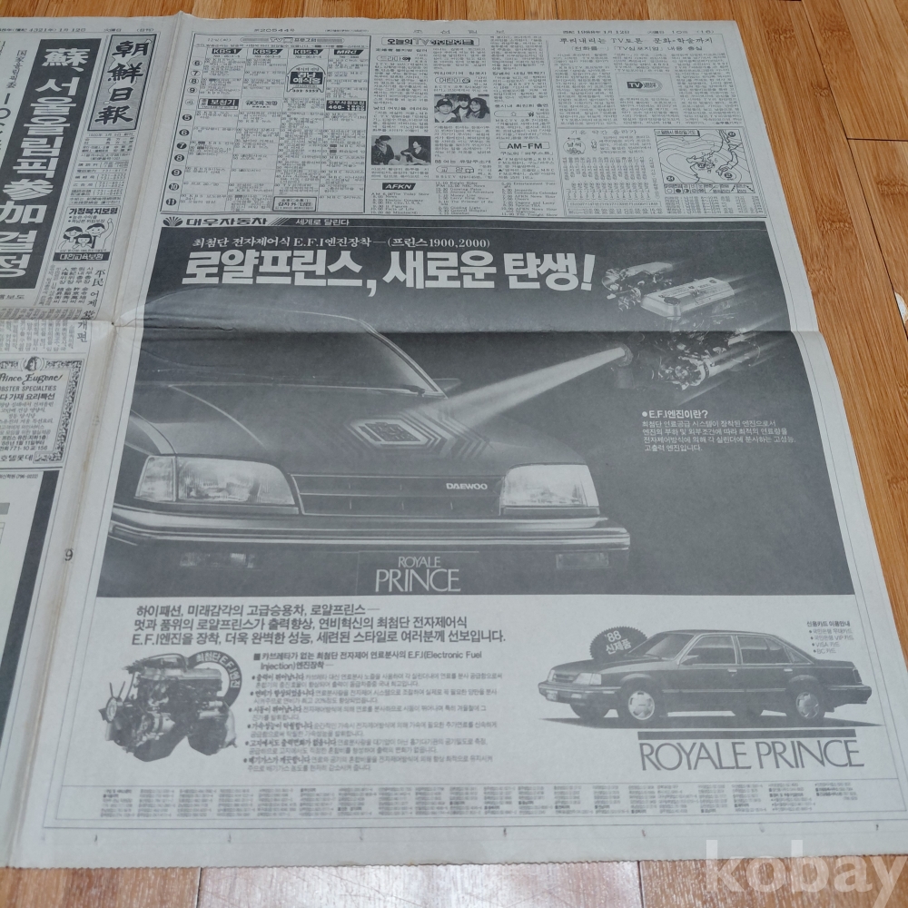 대우 로얄프린스 승용차 광고 조선일보 88년1월12일 올려드립니다