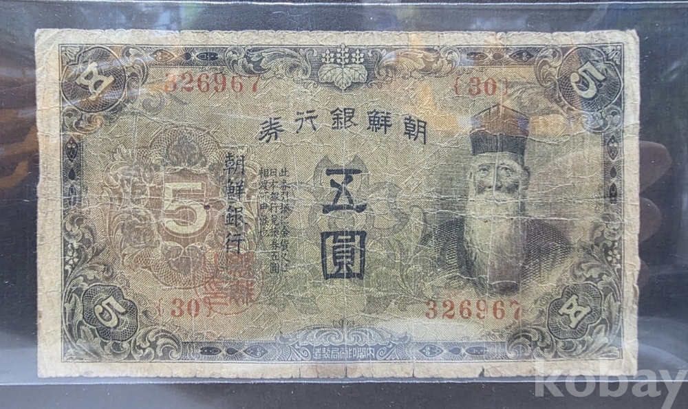 -대한민국 조선은행권 갑 5원 유번호 사용제 입니다.