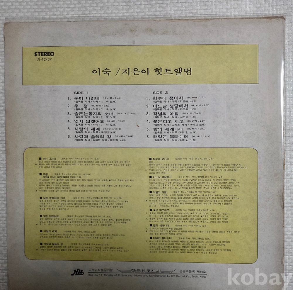| 자켓상태 | EX : 약간의 마모, 모서리 찢김 존재 | 음반상태 | EX : 재생에 영향 없는 가벼운 기스 존재 | 발매정보 | 초반 | 가사지여부 | 무 |