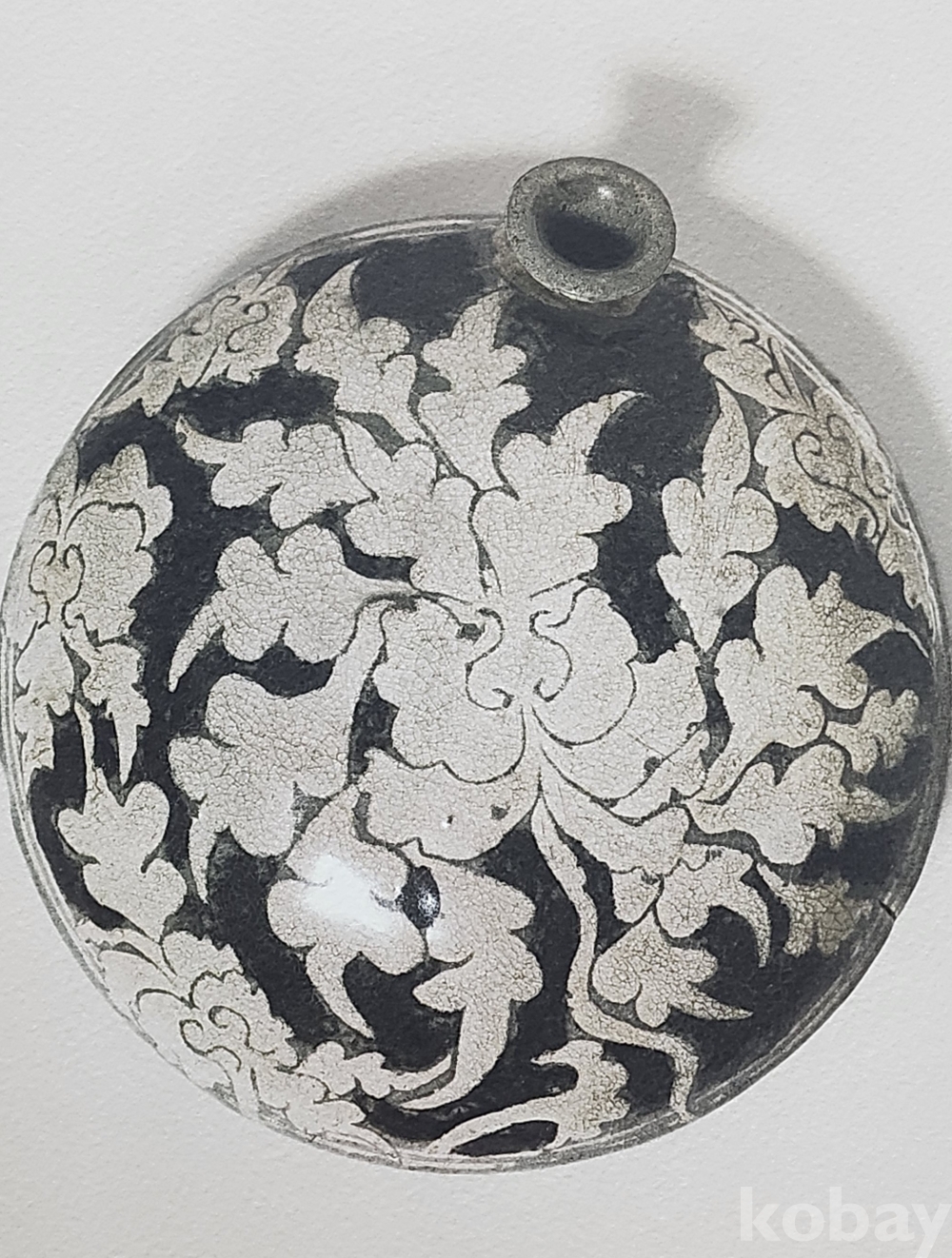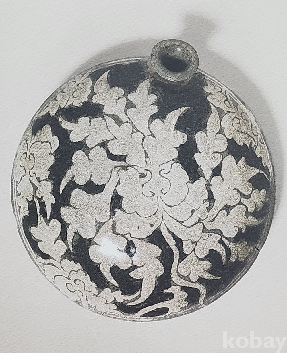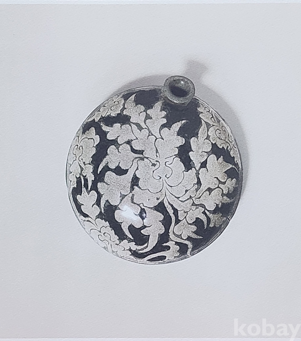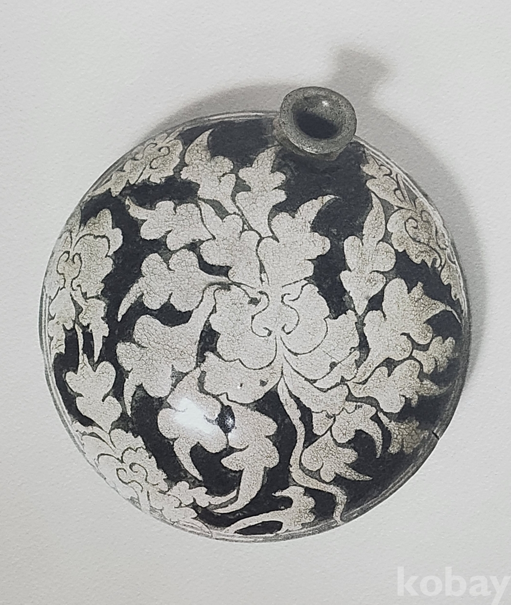 조선시대 분청사기 박지 철채 모란문 자라병 압인(壓印) 판화입니다,