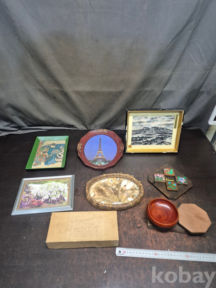 1980년대 빈티지 액자 다섯점과 목재로 소품다이로 사용하면 좋을듯한 목재로 3점일괄 23*27*2