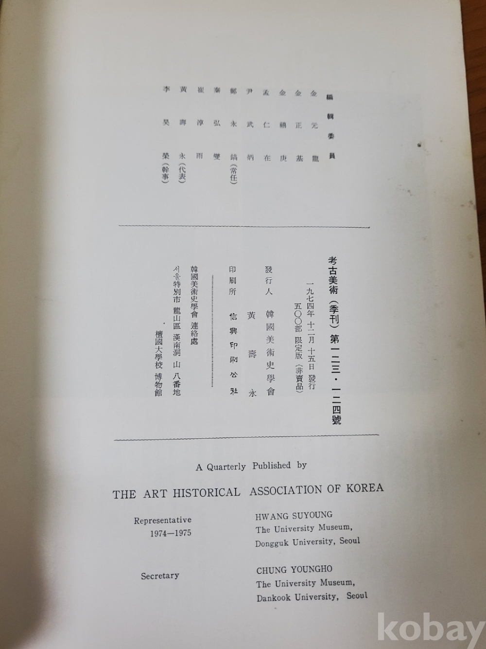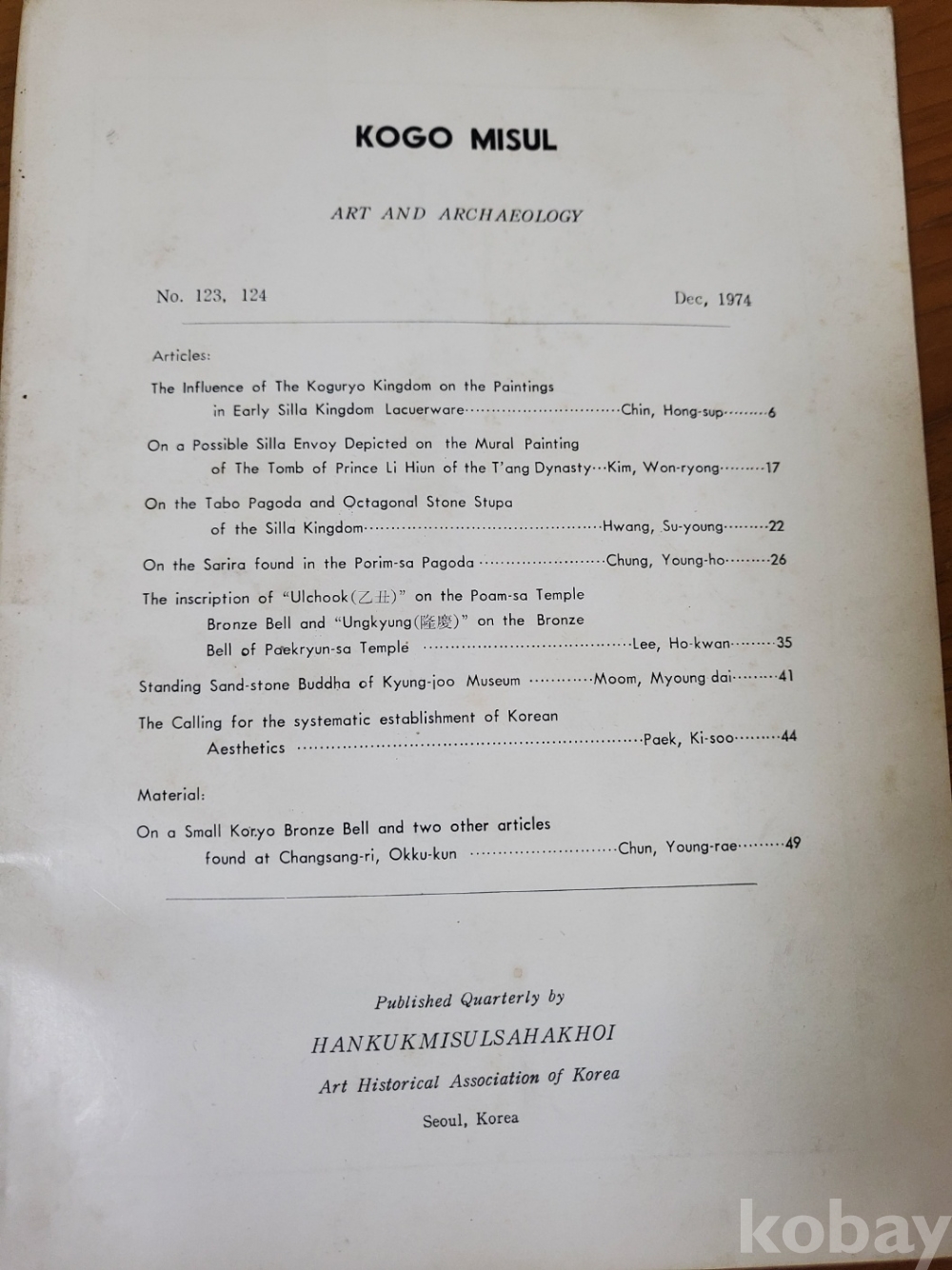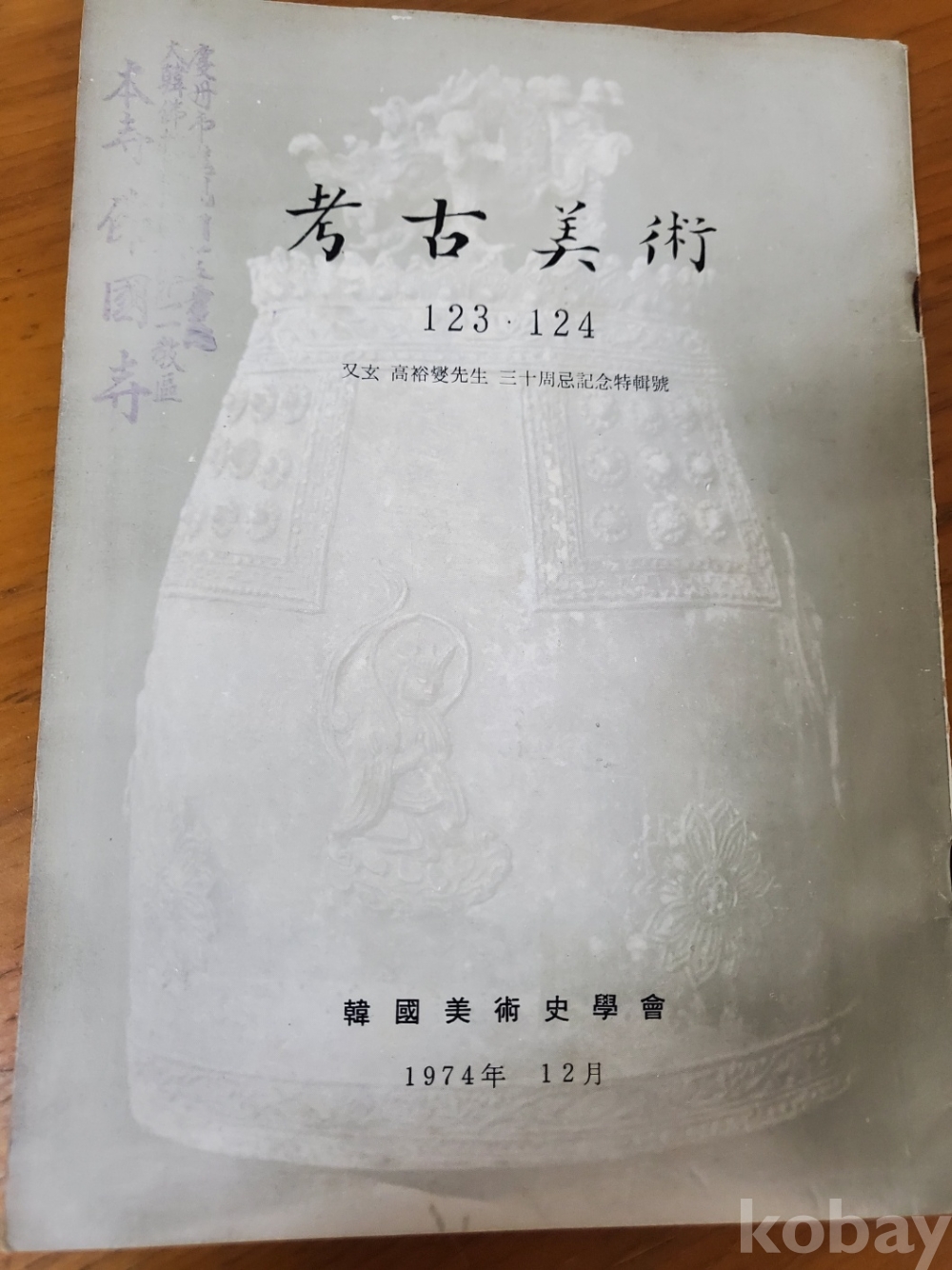 1. 고고미술(考古美術) 123 ․ 124호, 힌국미술사학회, 1974년, 64쪽, 계간, 비매품, 1000부 한정판, 상태 상, 사진 참조