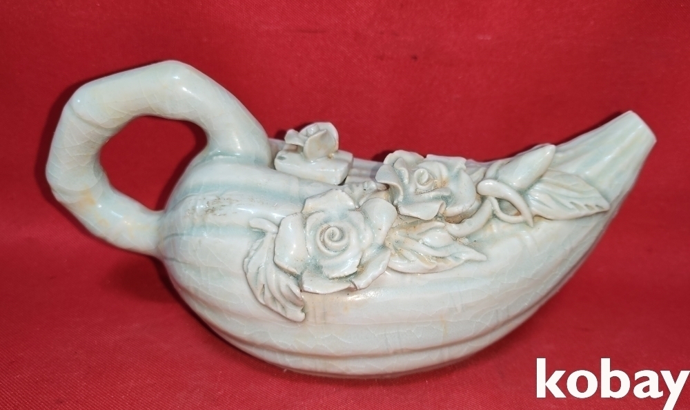 청화백자 꽃문양 주자형 연적입니다
