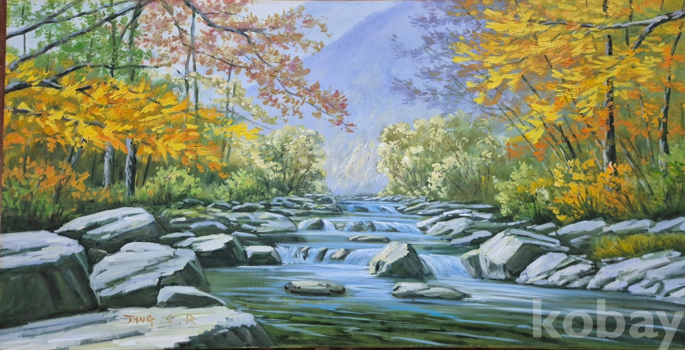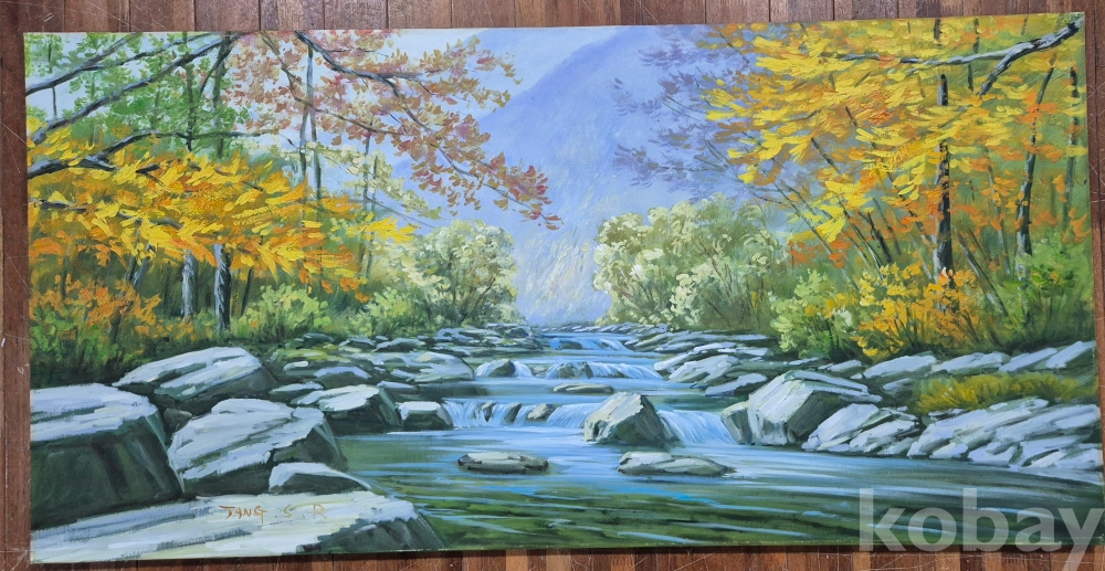 질감 두텁고 색채감 빼어나게 잘 그려진 대형 풍경 유화 작품'이오니 작품 이미지상 싸인.등 두루 잘