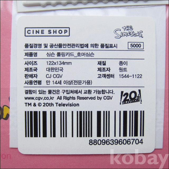 심슨 롤링카드 - 호머 심슨 (미사용) (391)